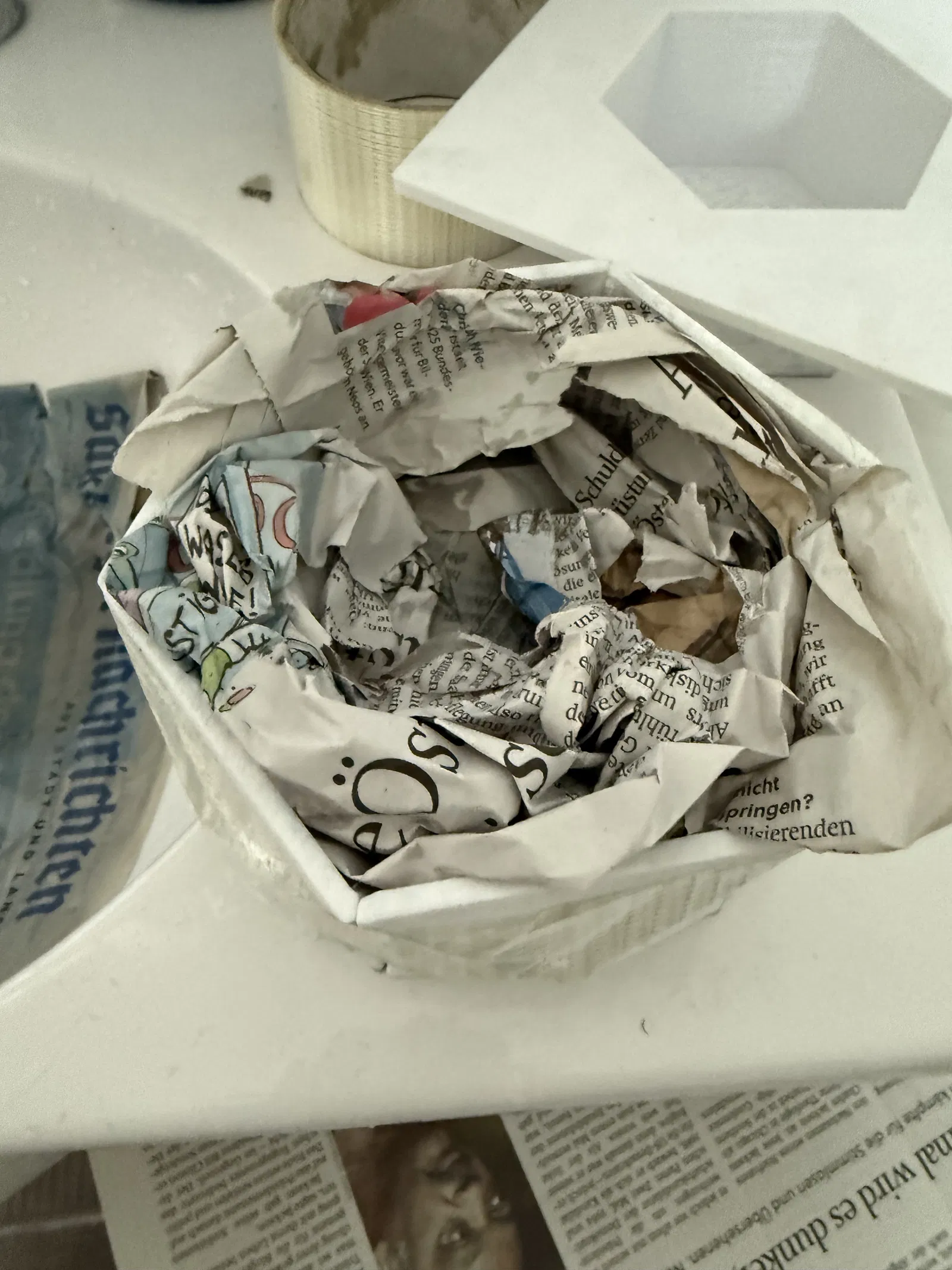 Nhồi/ép giấy ướt vào lòng khuôn.