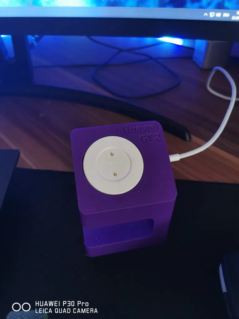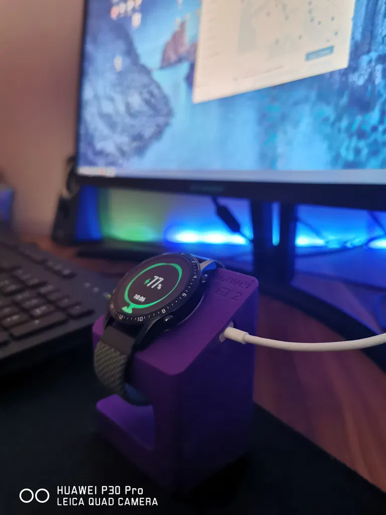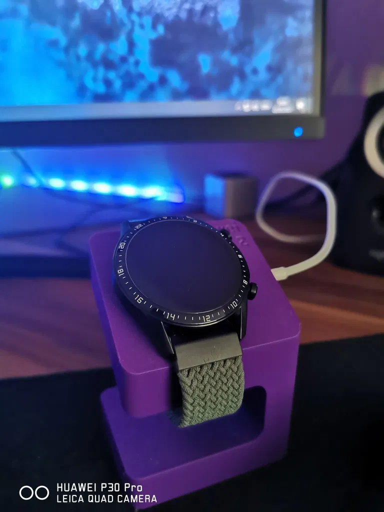 Đế sạc Huawei GT 2 thiết kế gọn, nhìn đẹp, được dựng bằng Fusion360. Lắp vừa khít đồng hồ, đặt lên là sạc ổn định. Phù hợp để in 3D làm stand để bàn cho smartwatch Huawei GT2.