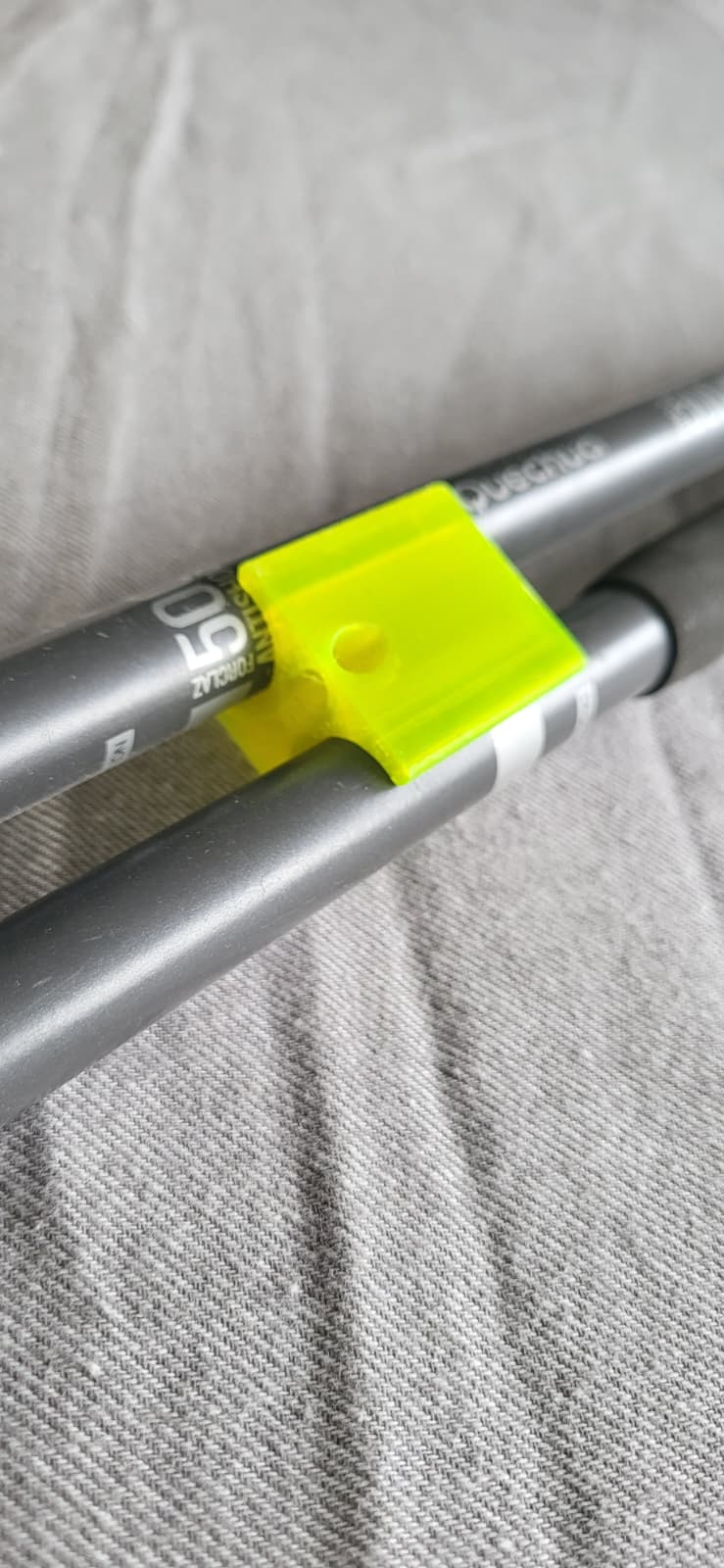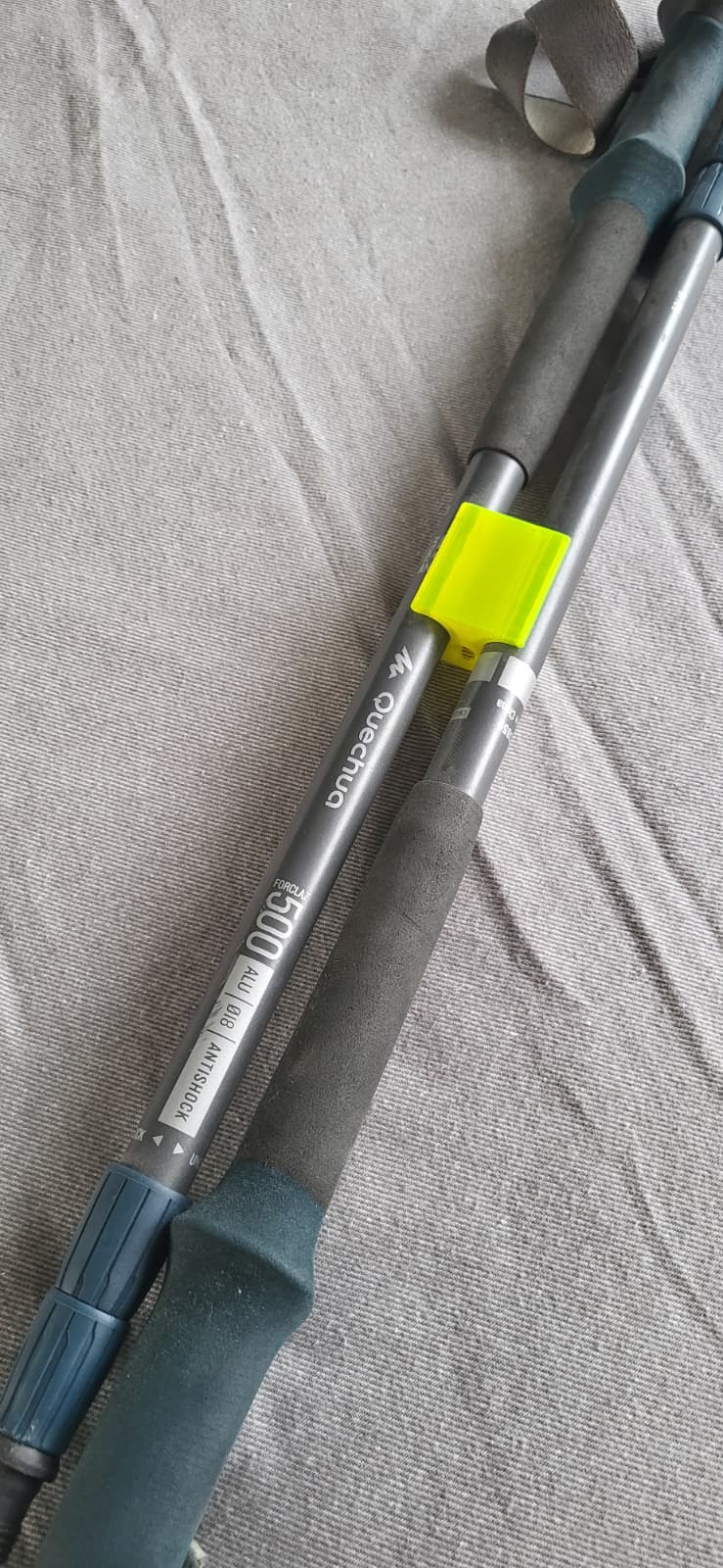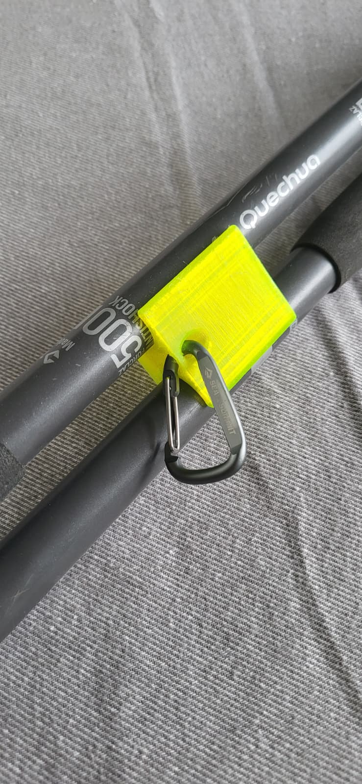Ngàm giữ gậy Quechua Forclaz 500 antishock, thiết kế để vừa gậy đường kính 18 mm. Fit rất khít và cần xoay đúng hướng tay cầm để gọn khi gắn lên balo. Khuyên in bản rút ngắn vừa phải để vẫn chắc chắn.
