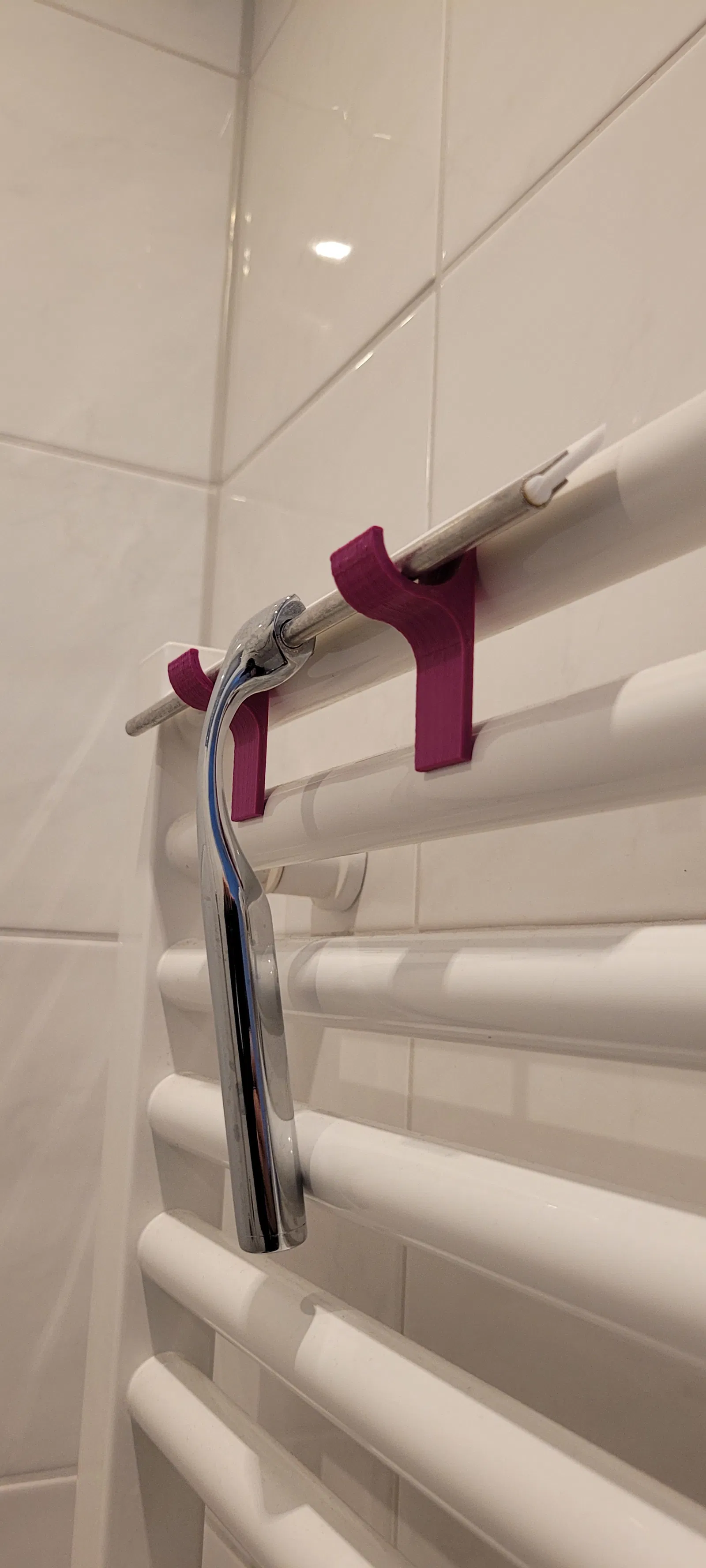 Bạn đang tìm cách để cất giữ cây gạt chổi cọ sau khi sử dụng mà không làm bừa bộn phòng tắm? Kẹp giữ gạt chổi cọ gắn lò sưởi chính là giải pháp bạn cần. Sản phẩm này được thiết kế đặc biệt để kẹp chặt vào thanh của lò sưởi trong phòng tắm, tạo ra một nơi cất giữ tiện lợi và gọn gàng cho cây gạt chổi cọ của bạn. Việc lắp đặt vô cùng đơn giản, không cần dụng cụ phức tạp, chỉ cần gắn vào thanh lò sưởi có đường kính 24.5mm. Để đảm bảo độ bền và khả năng chống ẩm tốt trong môi trường nhà tắm, bạn nên in sản phẩm này bằng vật liệu PETG. Bạn cần in hai chiếc kẹp để sử dụng tối ưu nhất, giúp cây gạt chổi cọ luôn khô ráo và sẵn sàng để dùng.