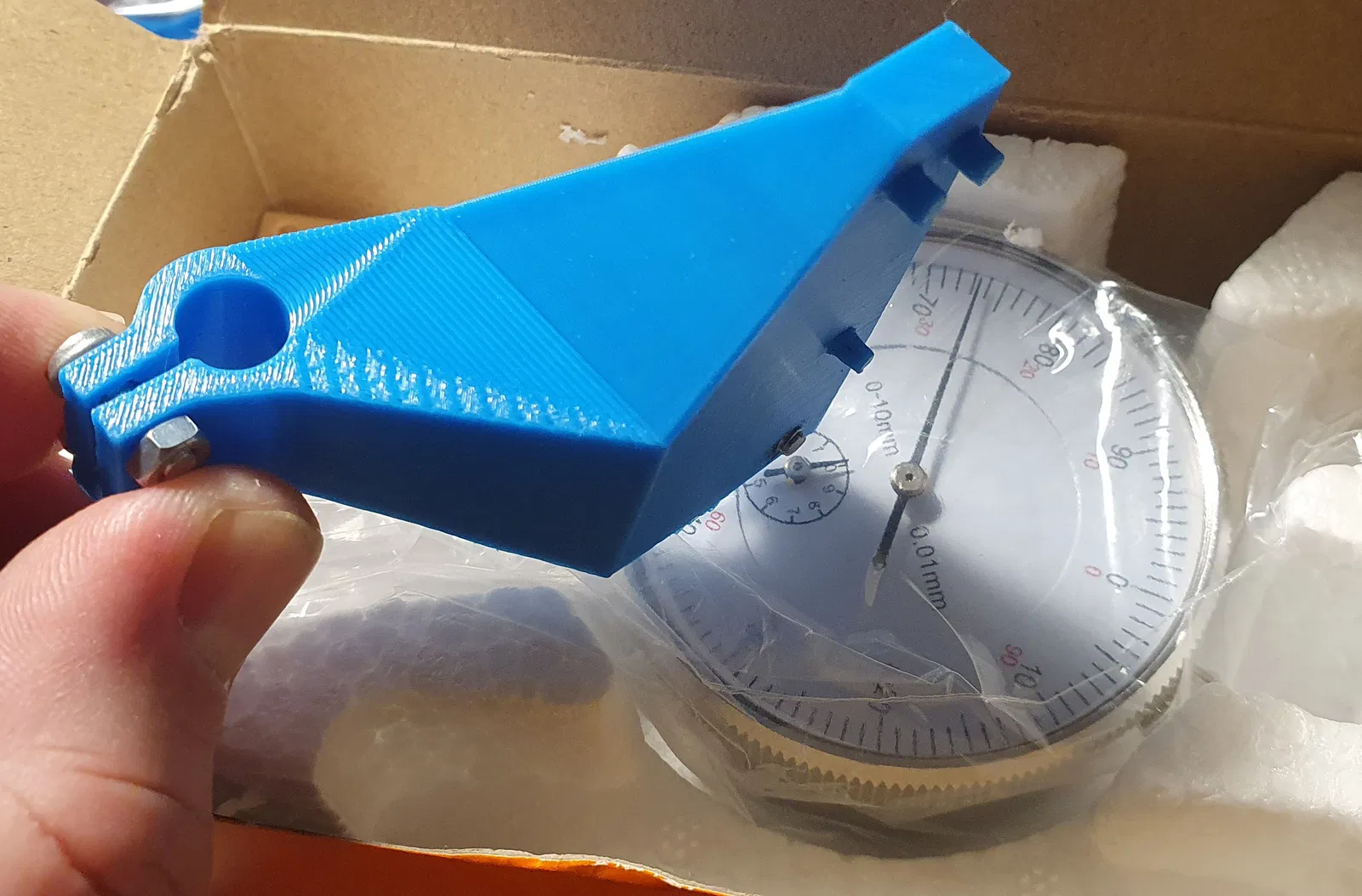 Ngàm gắn đồng hồ so để cân chỉnh bàn in