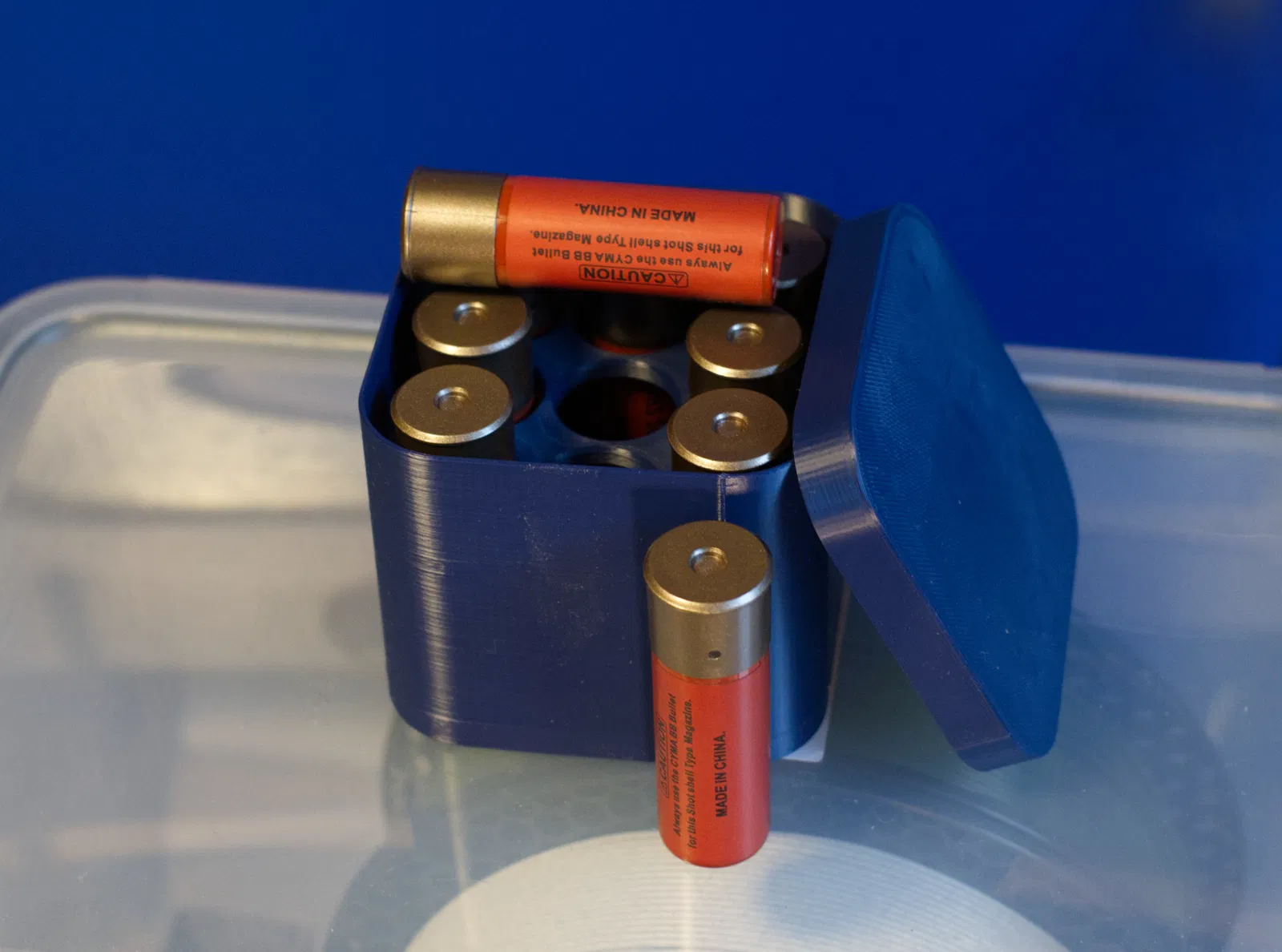 Anh em mê airsoft chắc chắn sẽ thích món đồ 3D này! Đây là một chiếc hộp được thiết kế riêng để đựng và vận chuyển băng đạn cho các loại súng airsoft Marui và Cyma. Với thiết kế thông minh, hộp có thể chứa tới 9 băng đạn, giúp anh em giữ gìn đồ đạc gọn gàng, tránh thất lạc hay hư hỏng trong quá trình di chuyển.