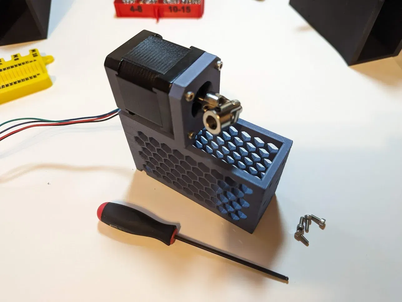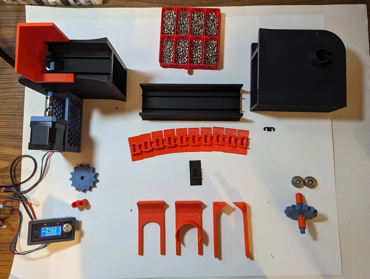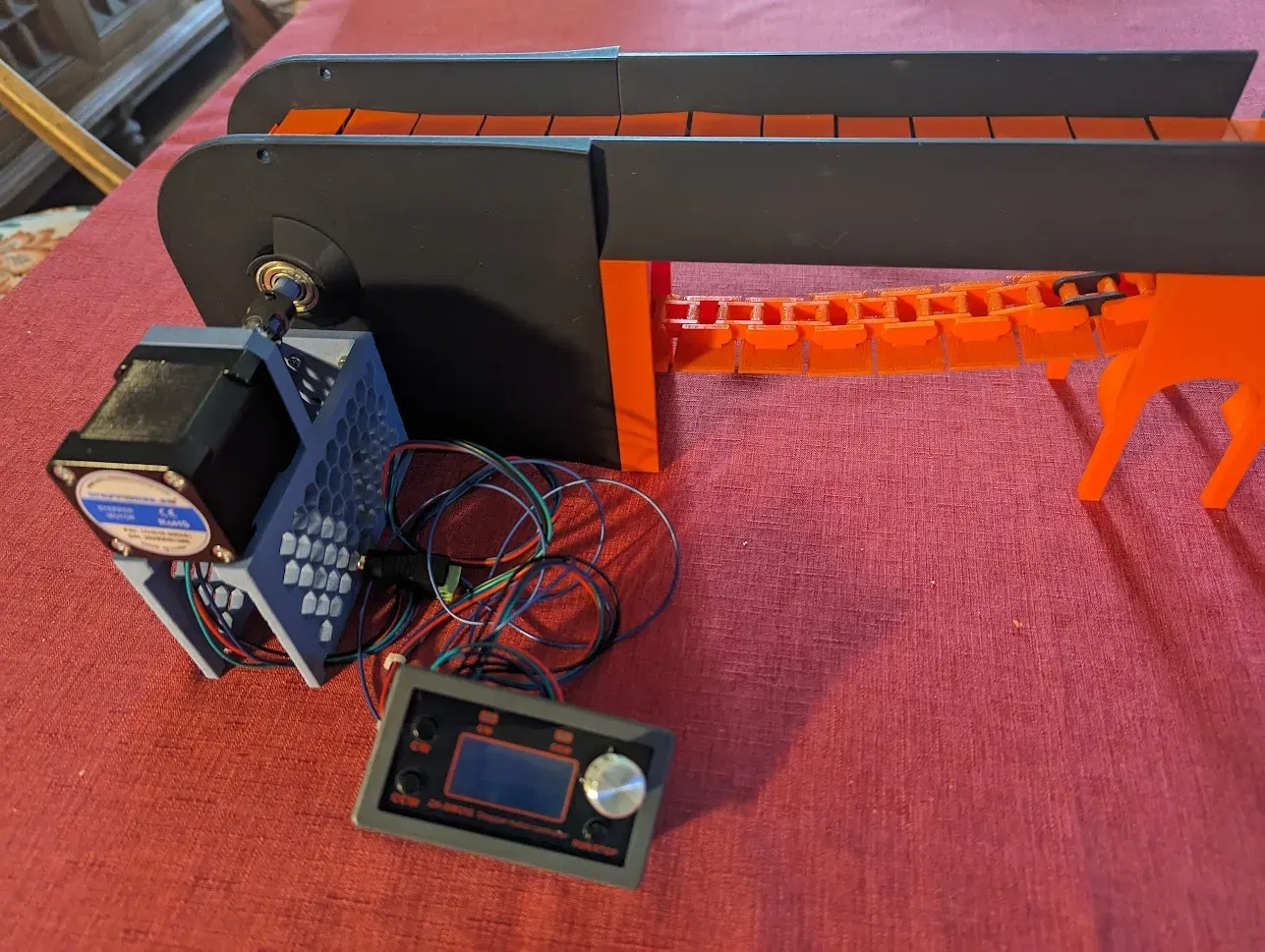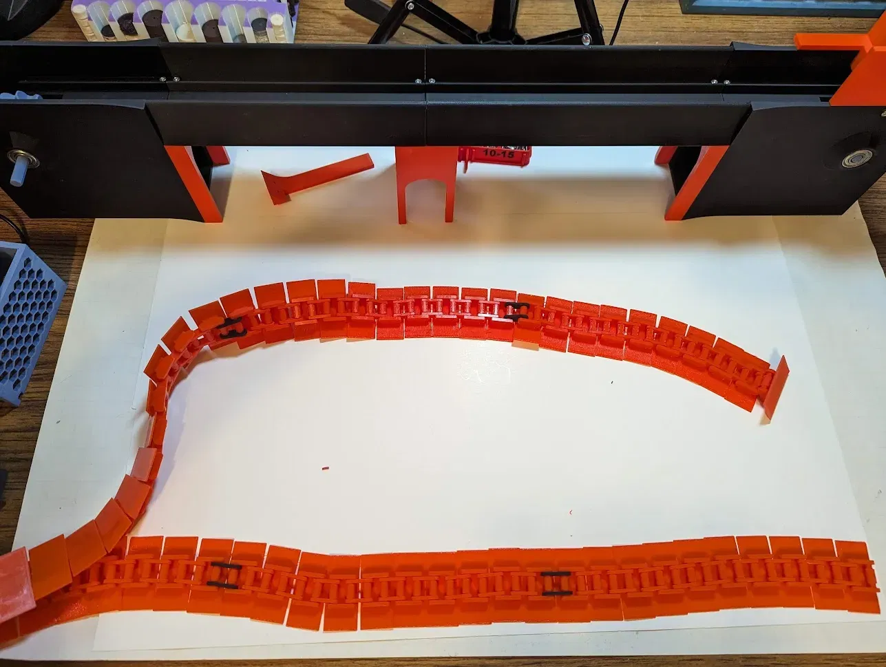 Đây là một băng chuyền mà tôi thiết kế để loại bỏ cuộn phân từ máy in X1C của tôi. Nó sử dụng một động cơ NEMA 17 và một bộ điều khiển bước để di chuyển phân từ đầu ra của máy in đến cuối bàn. Tổng chi phí khoảng 60 USD cho động cơ bước, bộ điều khiển và nguồn điện 12-24VDC. Các bánh răng sprocket, chuỗi băng chuyền và hệ thống truyền động đều do tôi thiết kế. Tôi đã bao gồm tất cả các tệp .stl và .stp cần thiết cho các thành phần chính dành cho những ai có khả năng CAD. Thưởng thức và cải thiện!