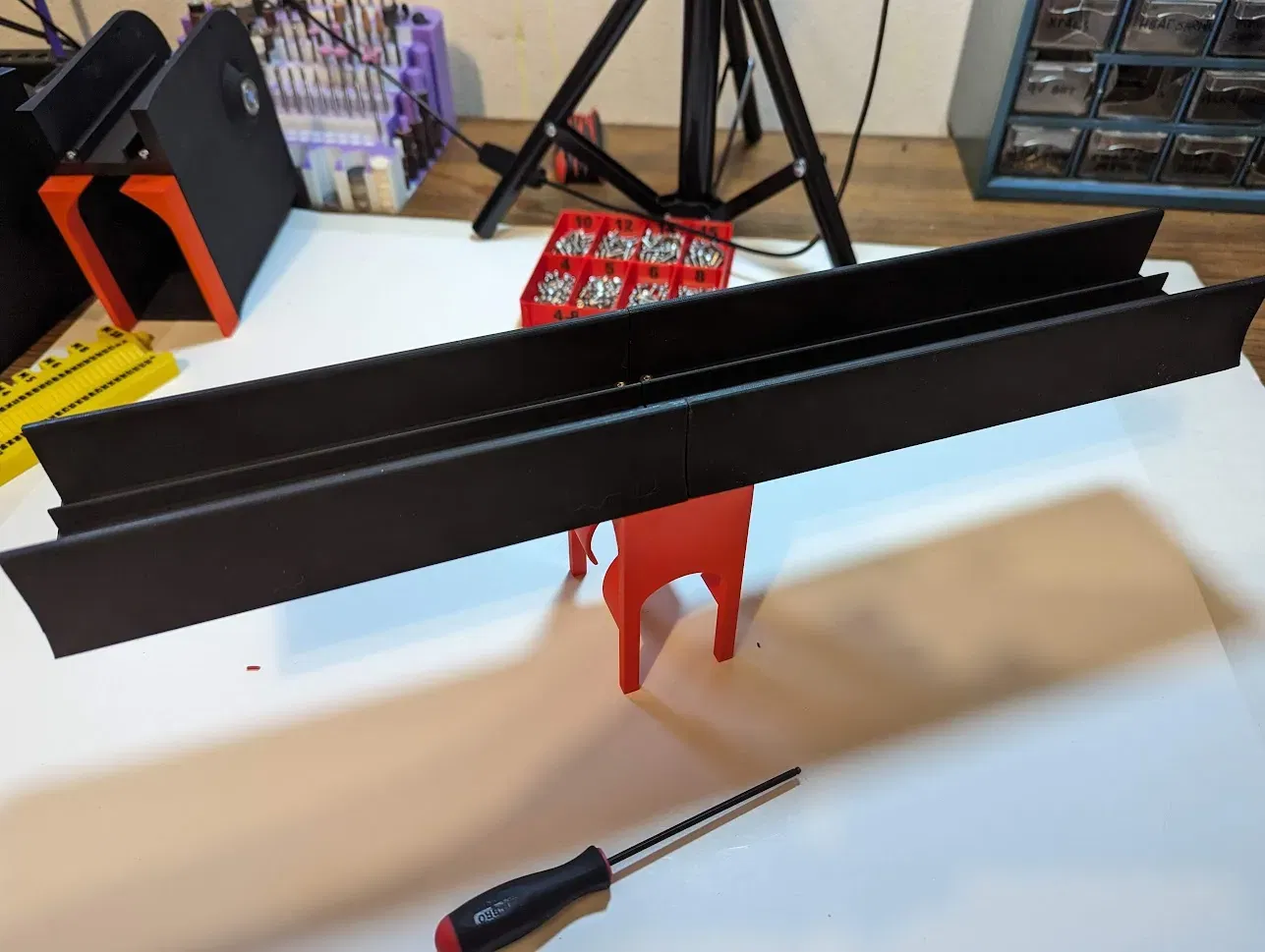 Cập nhật 2 (20230915): Tôi đã thêm một giá đỡ đơn khối chắc chắn hơn “Trestle V2” (.stp và .stl). Nó nên làm cho băng chuyền ít bị rung hơn, đặc biệt là qua những khoảng cách dài hơn.