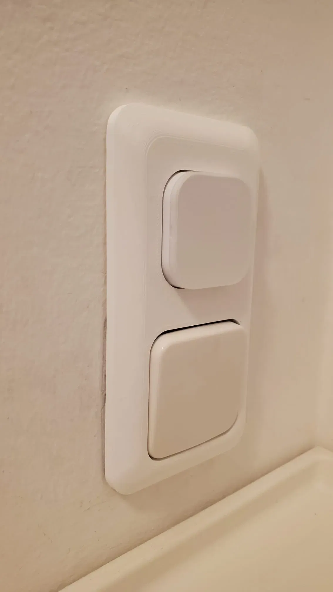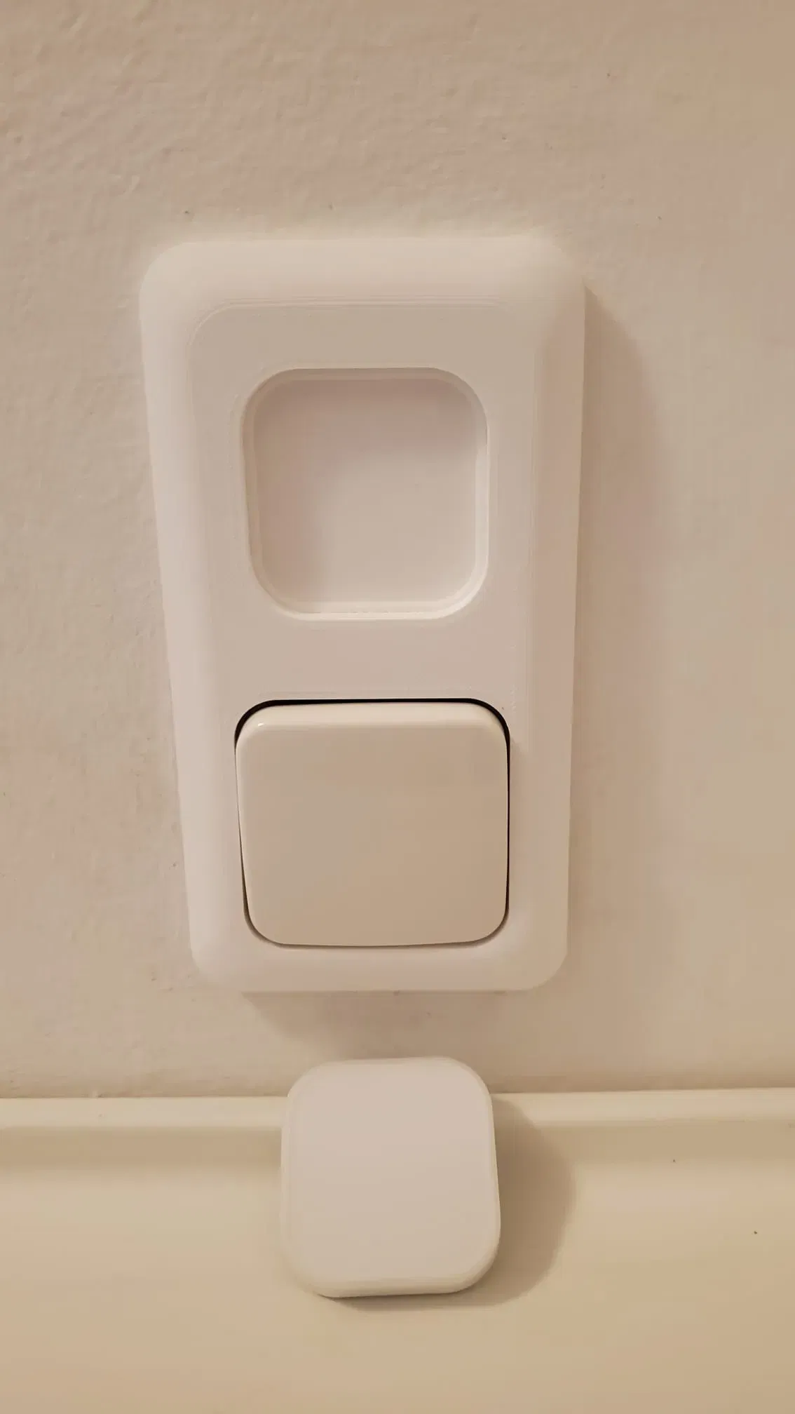 Công tắc đèn sẽ được sử dụng để cố định hộp lên tường. Ngoài ra, băng dính hai mặt có thể được đặt ở các lỗ cắt hình chữ nhật ở mặt sau (55 x 10mm). Để giữ nút ở vị trí, một nam châm 20x2mm được dán vào mặt sau.