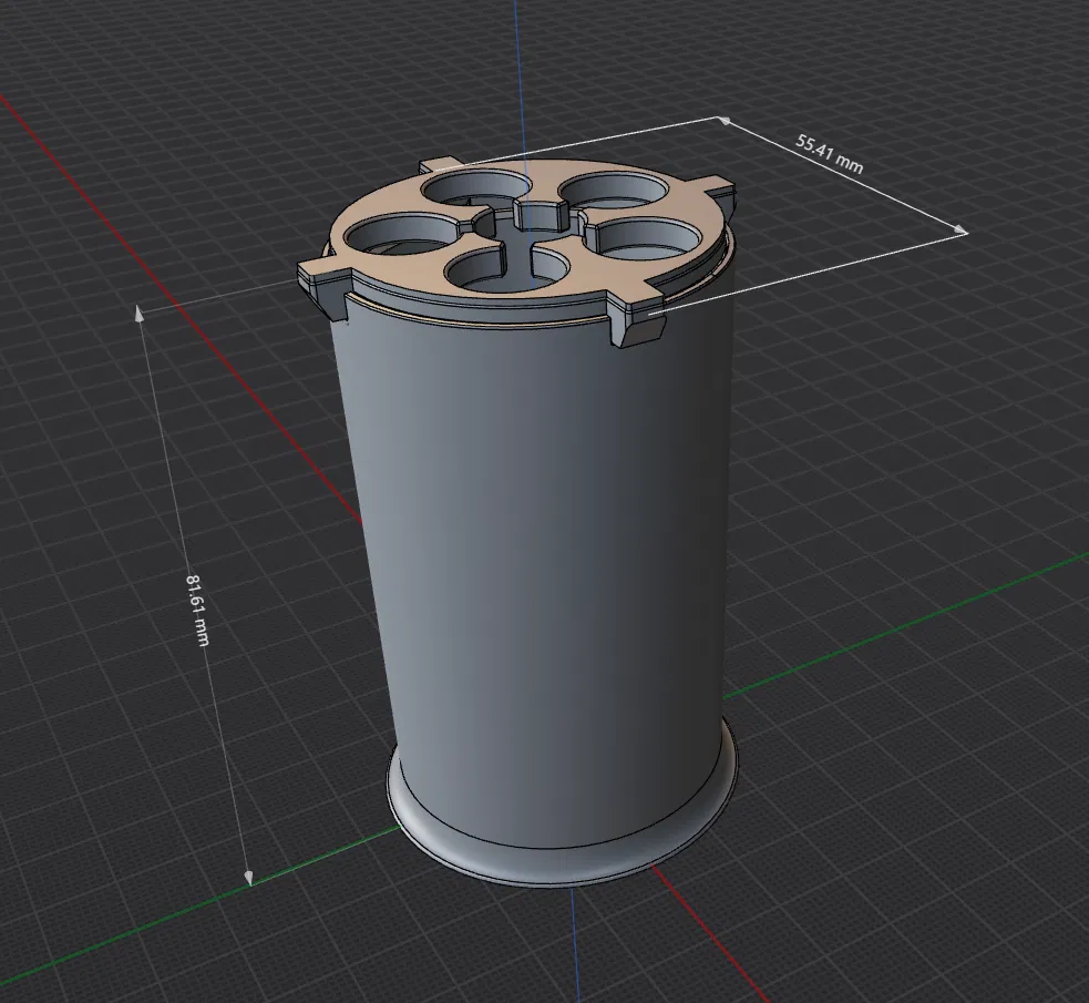 Mẫu Paintbrush Cup Holder nhỏ gọn để cắm cọ vẽ, đáy loe giúp hạn chế đổ tràn. Giữ tối đa 6 cây cọ đường kính tới 13mm, có gờ chống xoay và lắp friction fit, không cần support.