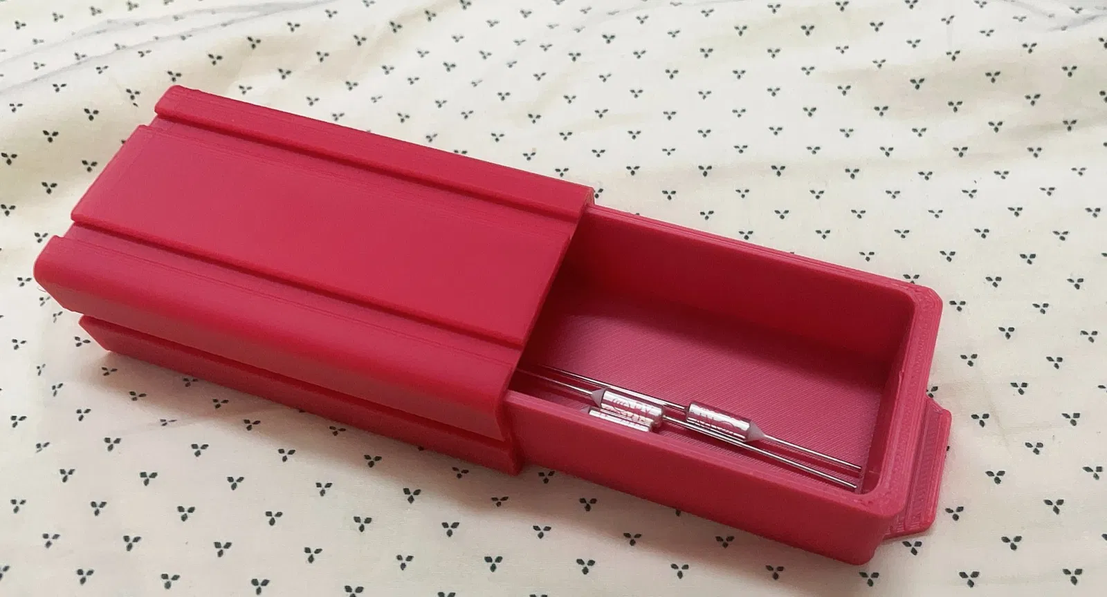 Một hộp lưu trữ có thể xếp chồng lên nhau đủ dài để chứa các điện trở. Một bộ hộp yêu cầu khoảng 50g filament (PLA), và có một khoảng trống để đặt nam châm bên trong nhằm ngăn ngừa việc mở ngẫu nhiên. Sử dụng cấu trúc giống như mộng và chốt để lắp ráp.