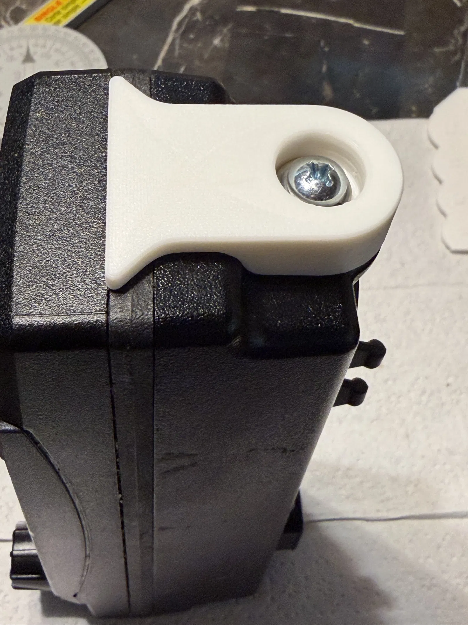 Tôi đo hình học kỹ nhất có thể. Tôi in thử phần “tai” màu trắng (trong hình) bằng PLA để kiểm tra hình học, bao gồm cả góc draft 3 độ. Kết quả ra ổn.