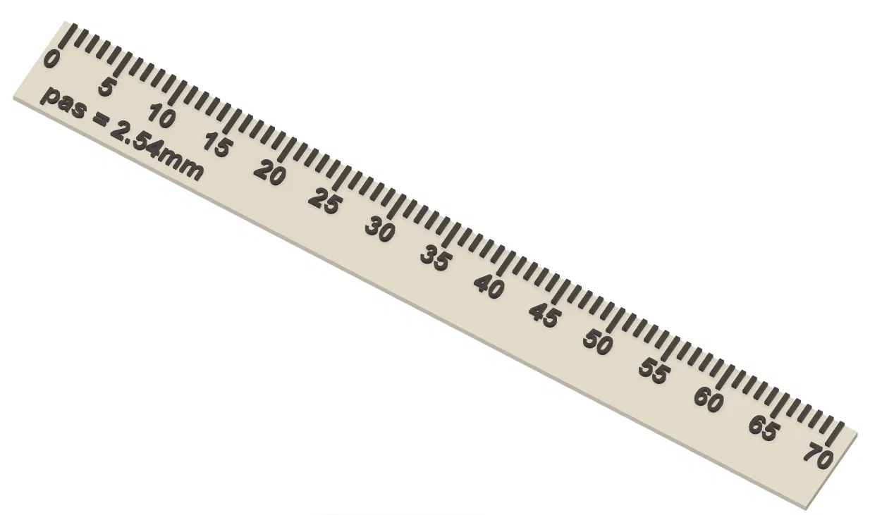 Mình đang kiếm một cây thước có bước 2,54 mm để làm breadboarding… mà tìm hoài không ra file STL nào đúng ý 😅 Thước inch thì có đó, nhưng vạch chia kiểu phân số, không đều nhau — xài cho điện tử không tiện chút nào.