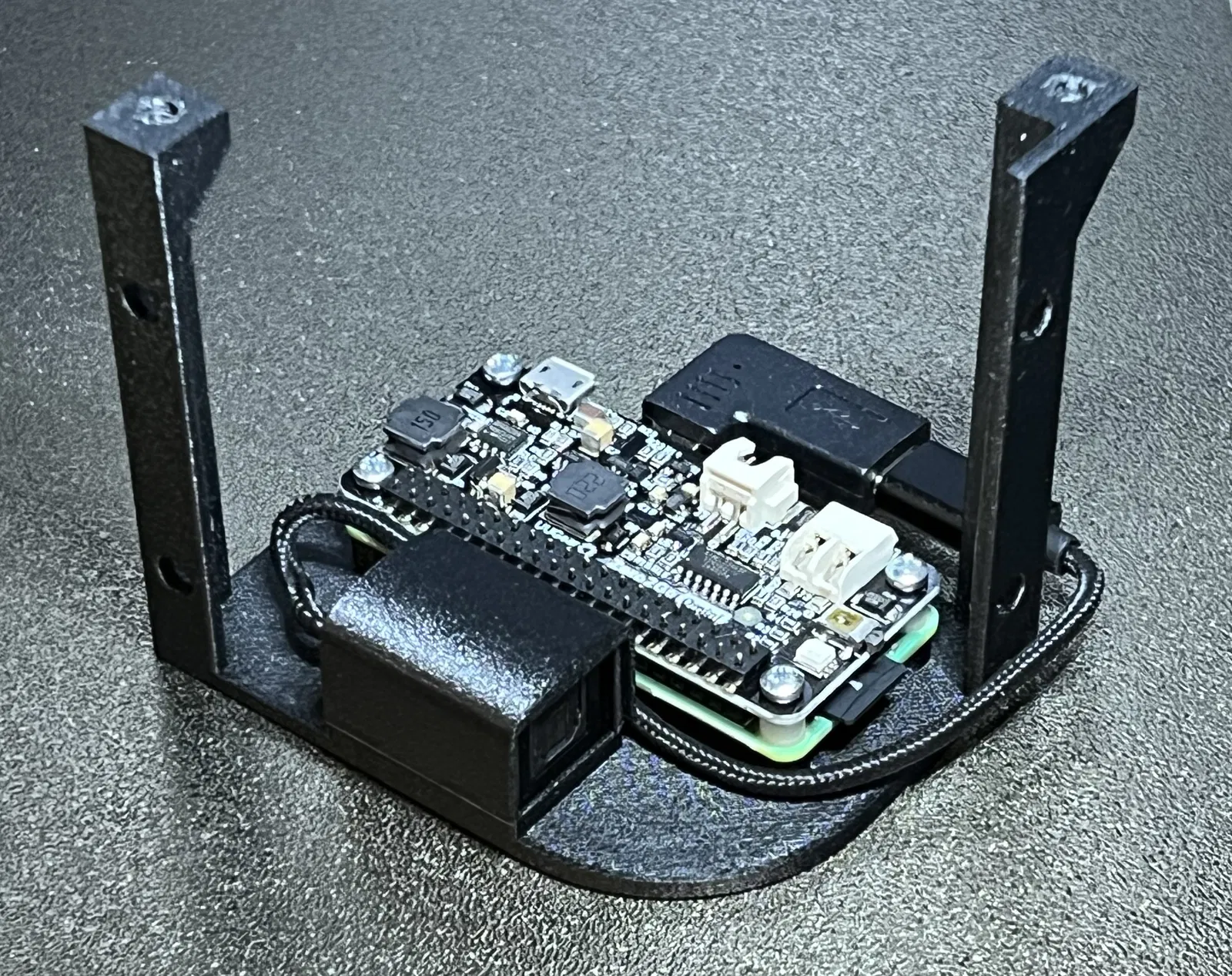 Bộ mount được thiết kế dựa trên các lỗ sẵn có từ nhà máy nhưng đang không dùng trên chassis, và đặt Pi Zero sát ngay phần trên của vỏ máy. Nên dùng mũi khoét lỗ (hole-saw) 114mm để cắt trên nắp máy. Mục đích là để tín hiệu WiFi có đường thoát rõ ràng ra ngoài vỏ. Sau đó, nắp tròn lớn sẽ che lỗ này và được gắn bằng 4 ngàm lò xo (spring mounts).