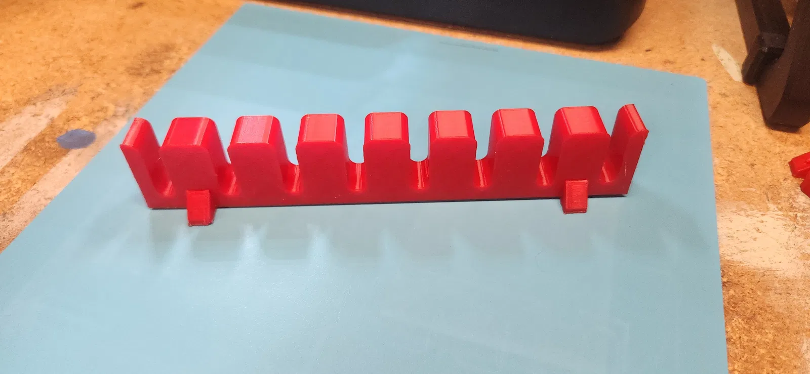 Mình chán cảnh ngăn kéo tua vít lúc nào cũng bừa bộn. Nên mình thiết kế mấy cái rack có rãnh đơn giản này để xếp thẳng hàng, gọn gàng trong ngăn kéo. Nói thiệt là khoảng cách giữa các rãnh có thể nên rộng hơn chút. Nếu mình thiết kế lại thì mình sẽ cập nhật file.