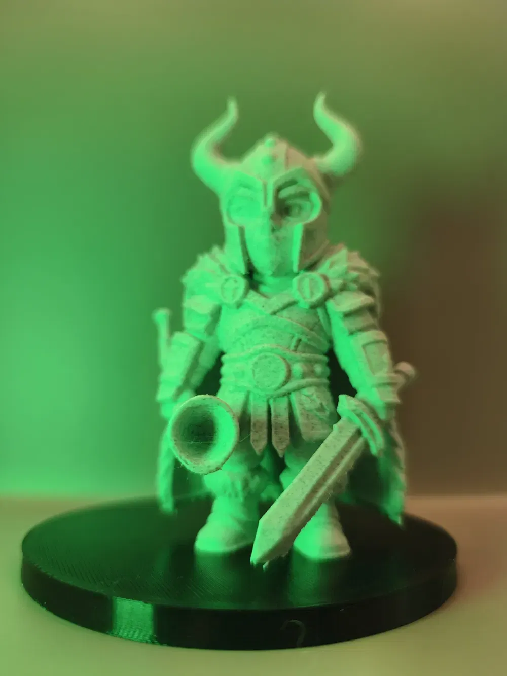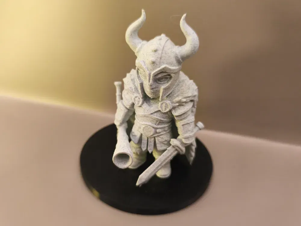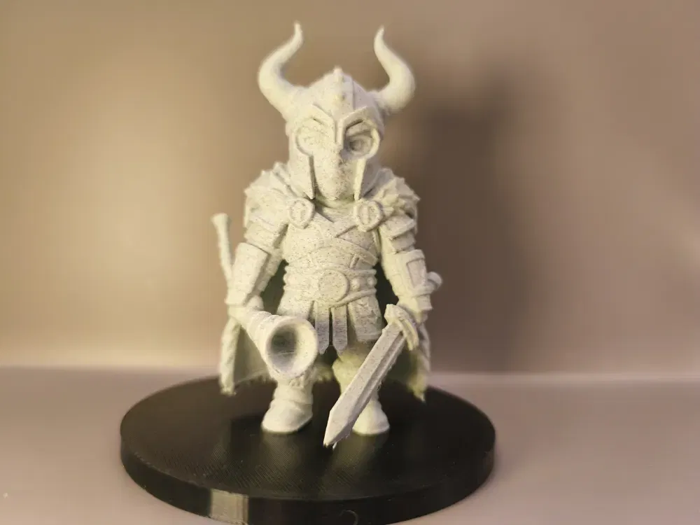 Mẫu Heimdall phong cách figure từ thần thoại Bắc Âu, tái hiện một chiến binh huyền thoại. Tối ưu để in 3D với PLA Marble, layer 0.12mm, infill 15% và Tree Supports (Organic). Quy trình dựng kết hợp Meshy AI, Blender và Meshmixer.