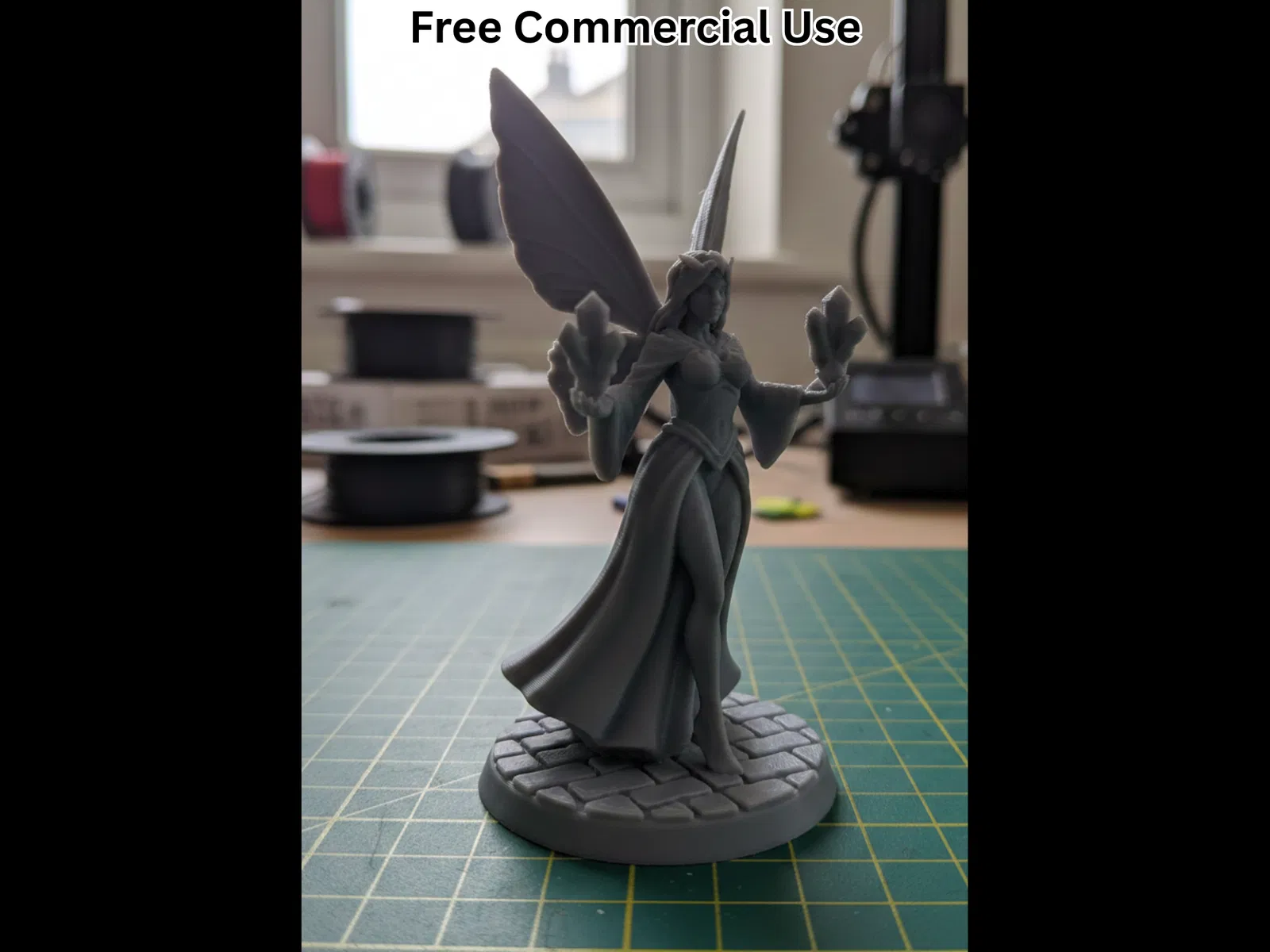 Mô hình mini Fairy Sorceress này khắc họa một nữ pháp sư tiên có cánh mảnh mai, mặc áo choàng bay bồng và cầm trượng phép. Phần cánh được thiết kế dày hơn so với các mẫu fantasy truyền thống để đảm bảo in FDM ổn định và bền hơn. Hiệu ứng phép thuật được đơn giản hóa thành các khối đặc, thay vì những dải mỏng dễ gãy. Nếp áo được làm rõ, dạng lớp (layered) để cho ra kết quả sạch ở chiều cao lớp 0.2mm. Mô hình giữ đế vững, phù hợp chơi tabletop và trưng bày.