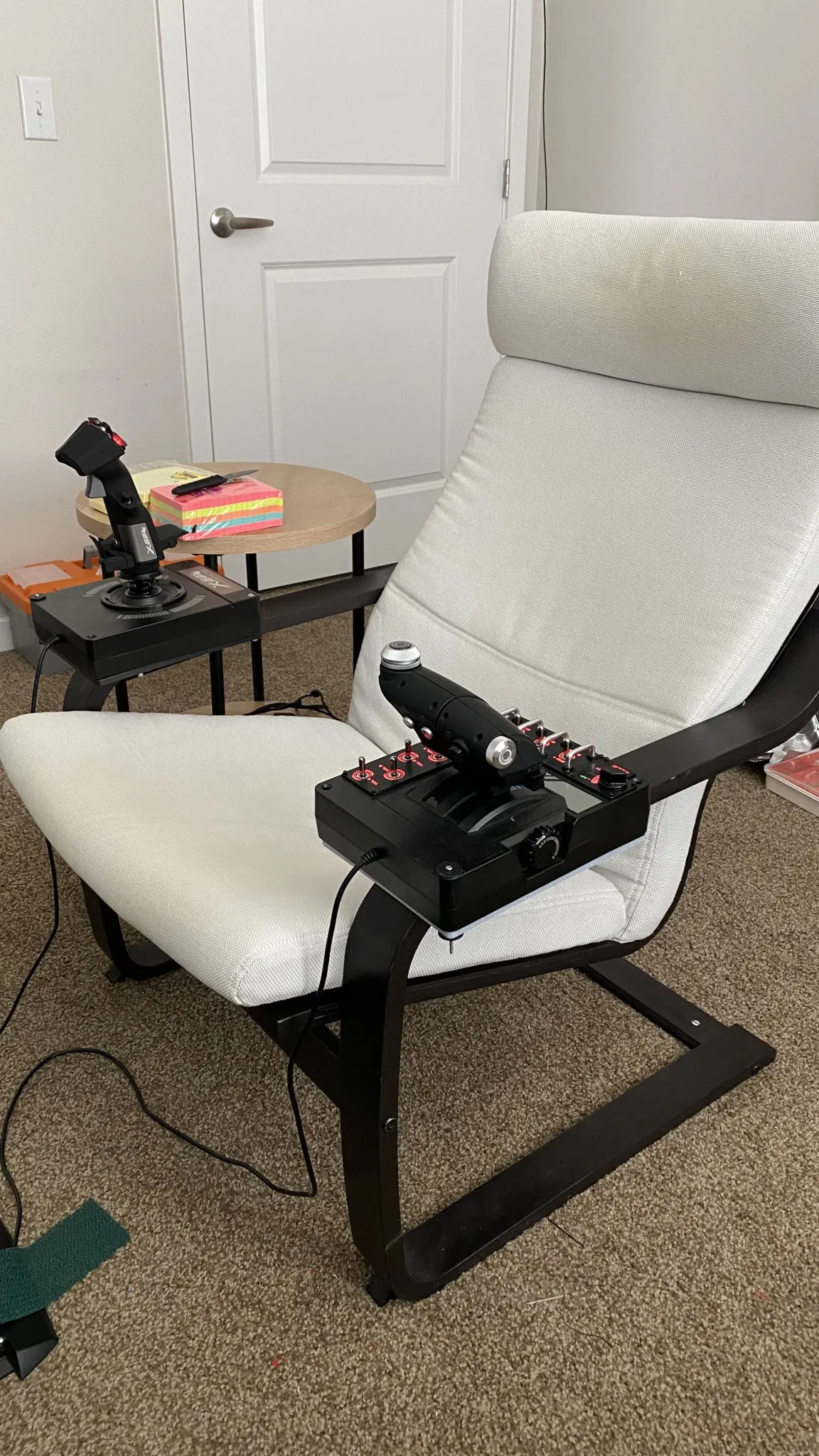 Đây là một giá treo tôi đã làm cho IKEA Poang của mình cho DCS, nó đặc biệt được sản xuất cho Logitech X56 hoặc Saitek X55 Hotas.