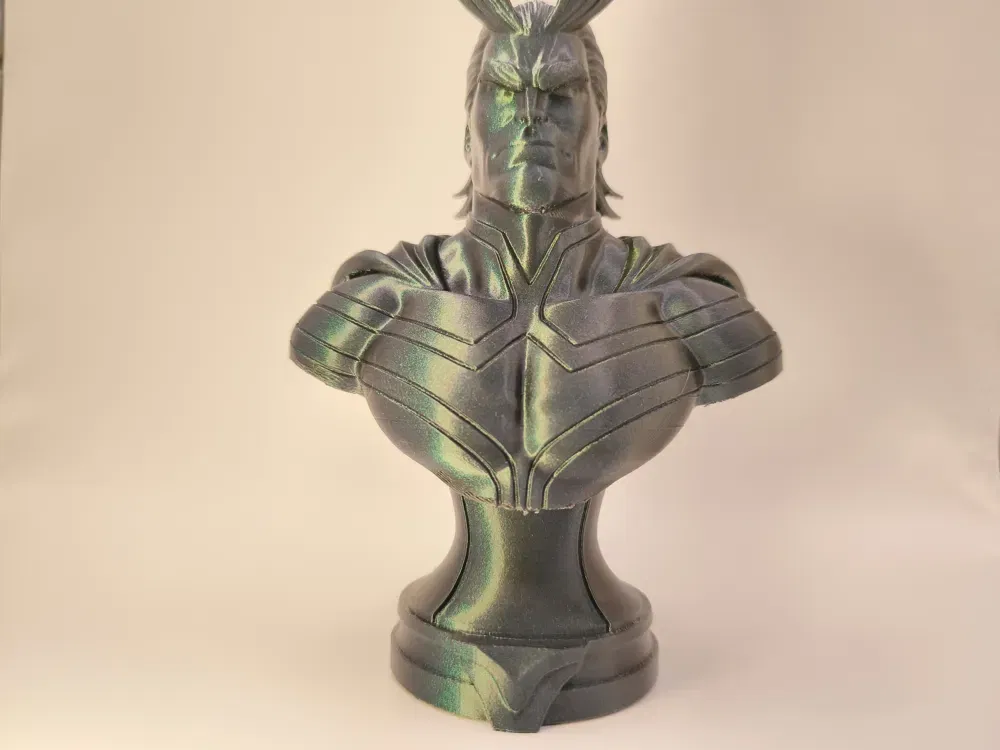 Mẫu tượng bán thân All Might được dựng theo workflow lai: tạo base bằng Meshy 3D AI, sau đó import vào Blender để điêu khắc và chỉnh anatomy, cuối cùng xử lý mesh/solid trong Meshmixer sẵn sàng cho in 3D.