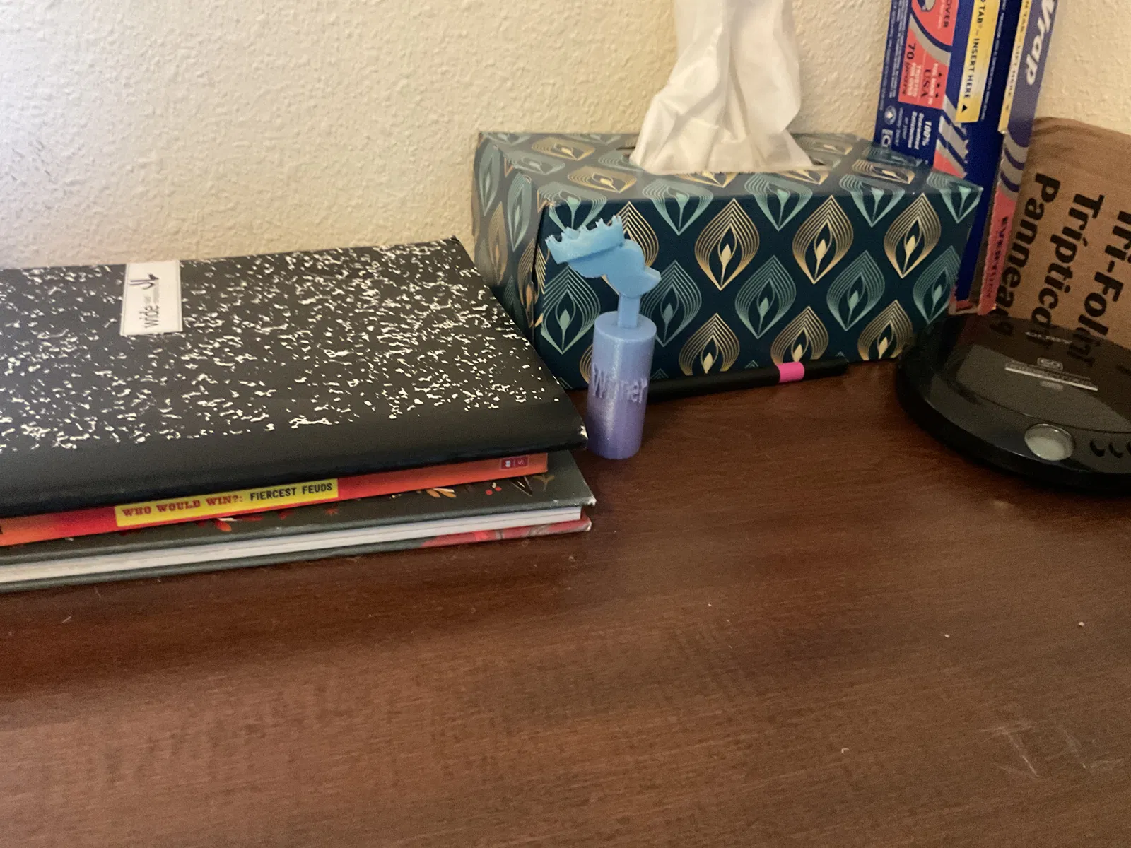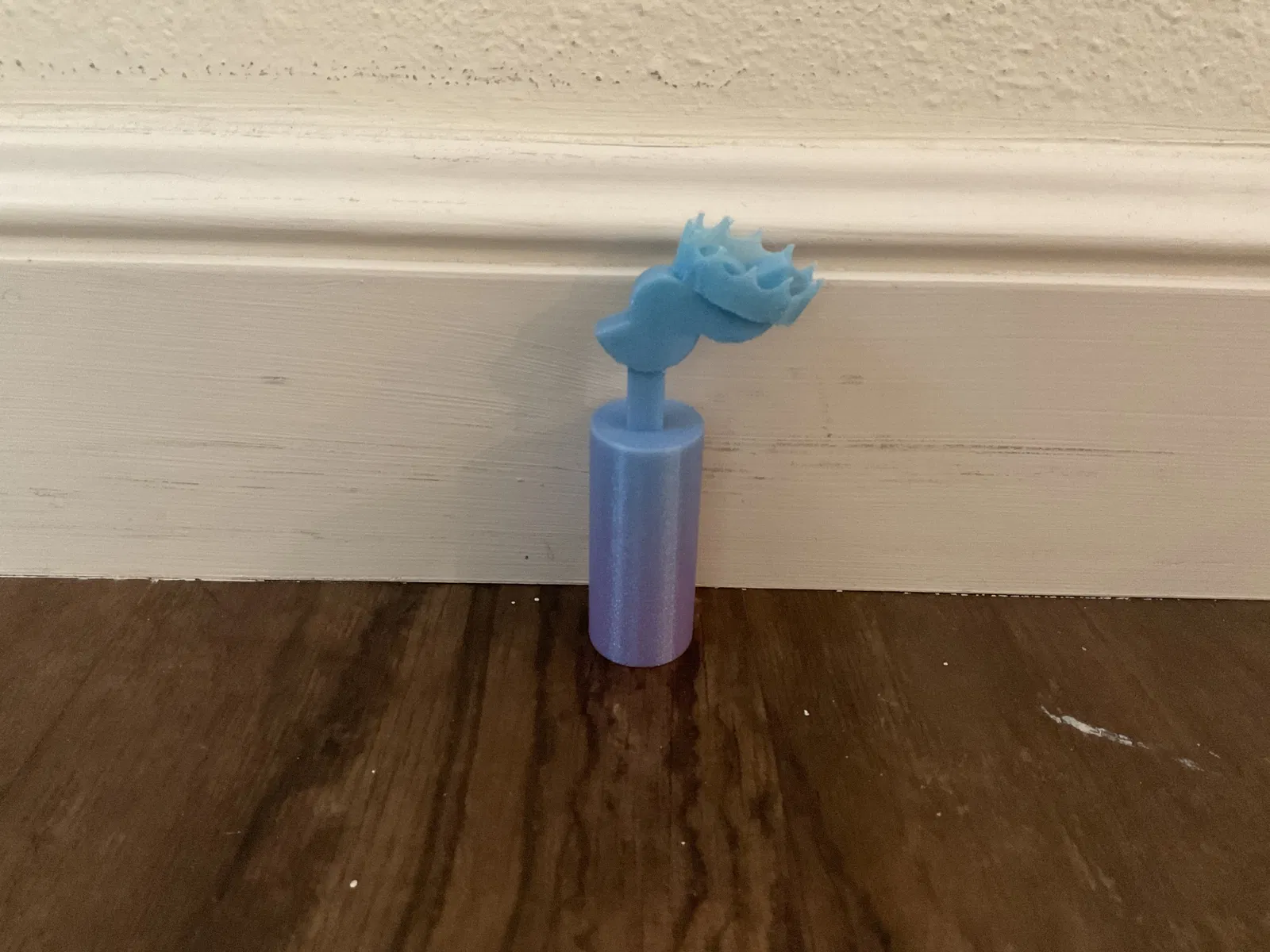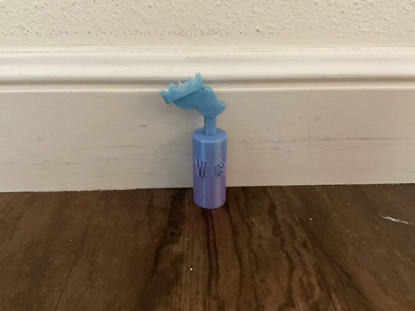 Chiếc cúp này không chỉ để trưng bày mà còn có thể trở thành một lời nhắc nhở vui vẻ về một sự kiện đáng nhớ hay một người bạn hài hước. Bạn có thể đặt nó trên bàn làm việc để tạo điểm nhấn, trên kệ tủ để thêm phần sinh động, hoặc tặng cho bạn bè như một món quà bất ngờ đầy ý nghĩa. Chất liệu nhựa in 3D bền bỉ, màu sắc tươi sáng (như trong hình là màu xanh dương và tím gradient) chắc chắn sẽ thu hút ánh nhìn. Kích thước nhỏ gọn giúp bạn dễ dàng bố trí ở bất kỳ đâu mà không chiếm nhiều diện tích.