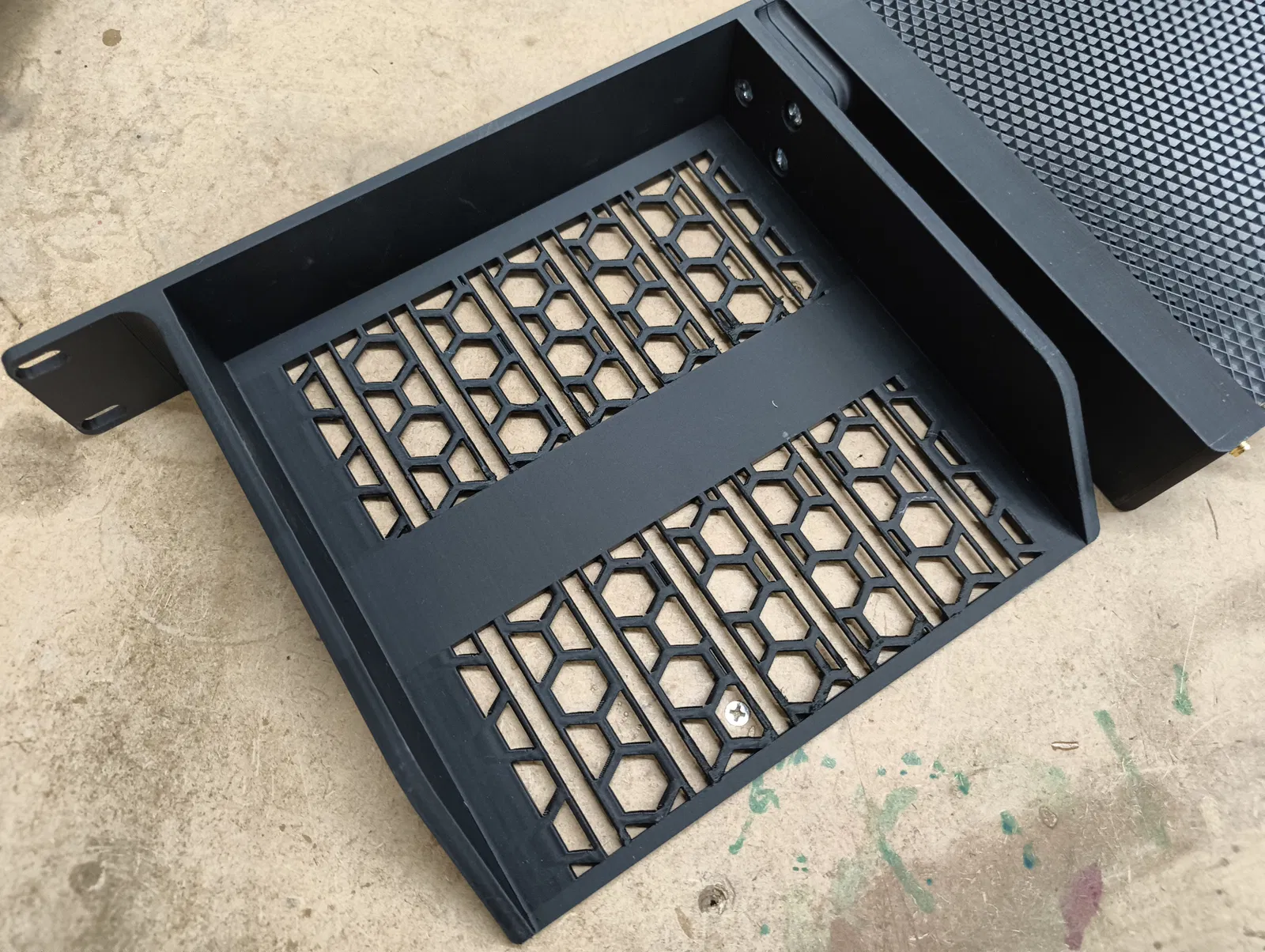 Phiên bản hiện tại có một cái gờ ở phía sau để chặn đồ không bị trượt rơi ra, nhưng khi in đẹp thì sẽ cần supports hoặc phải chỉnh bridging thật “ngon”.