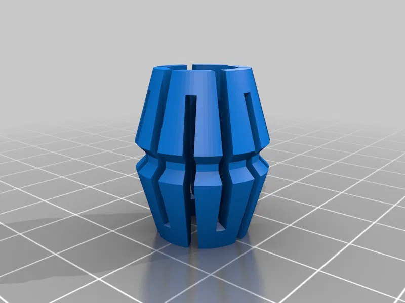 Cơ cấu kẹp bút kiểu collet cho CNC Plotter, dùng cho bút đường kính 8–10 mm. Collet đối xứng để giảm delaminating khi kẹp bút nhỏ; khuyên in collet bằng PETG và các phần ren/giữ bằng PLA.