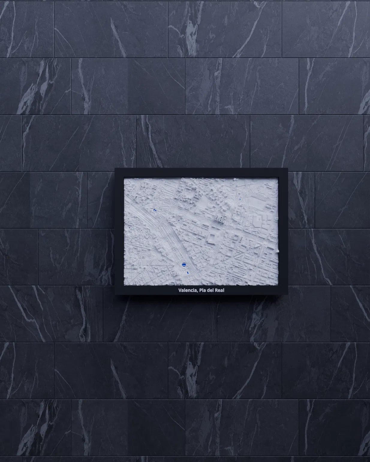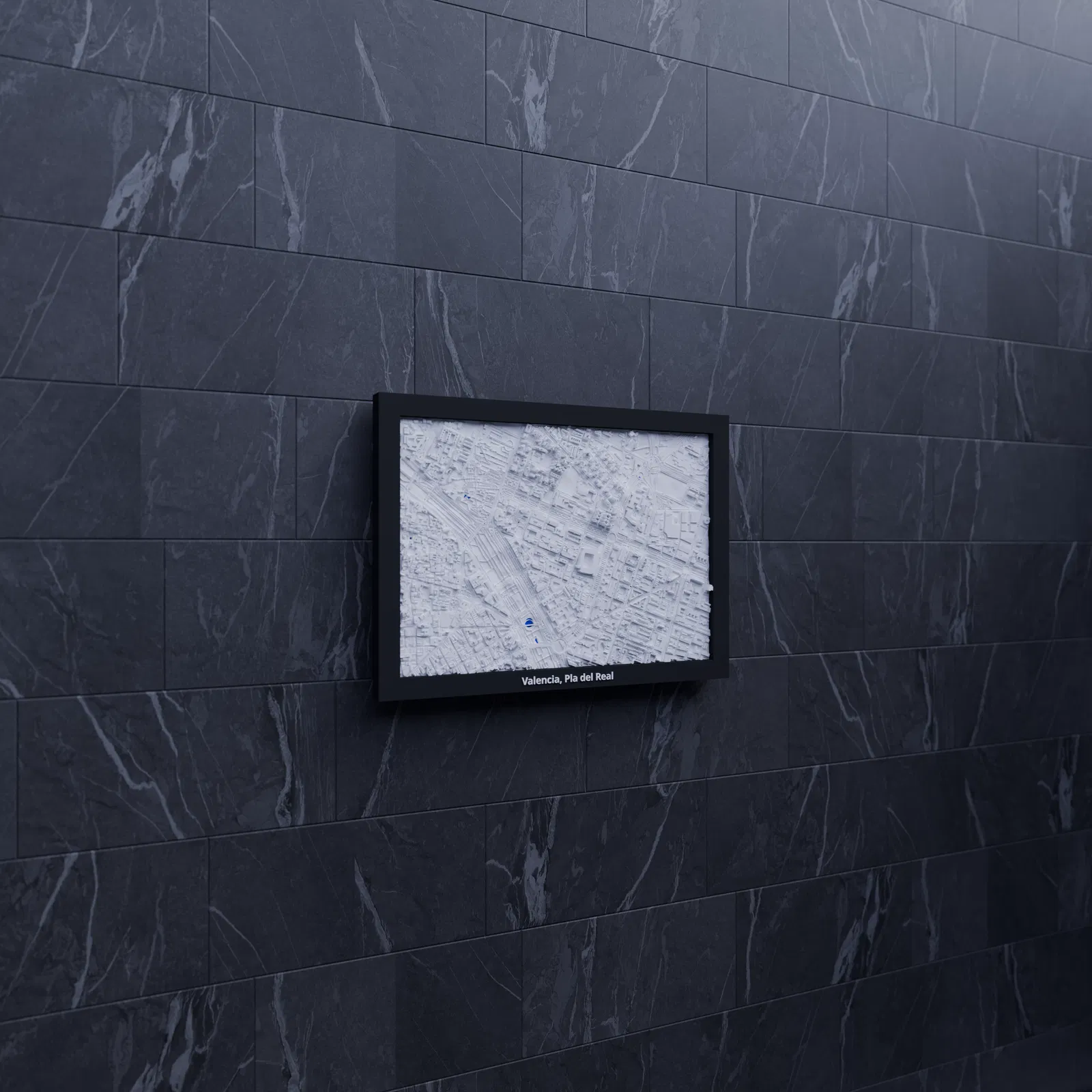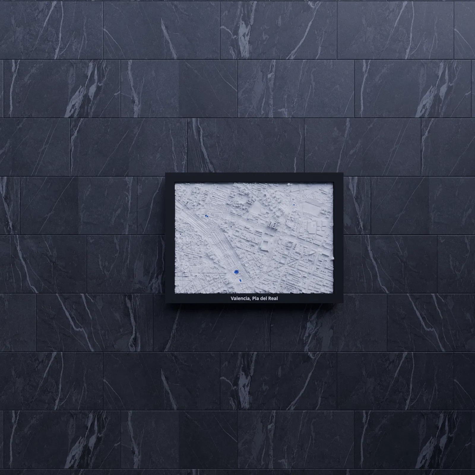 Mô hình địa hình mini in 3D tái hiện Valencia, Pla del Real (Tây Ban Nha) từ dữ liệu địa lý thật. Kèm file STL/3MF và nhiều lựa chọn frame có lỗ treo, phù hợp trưng bày, học tập hoặc làm quà lưu niệm.