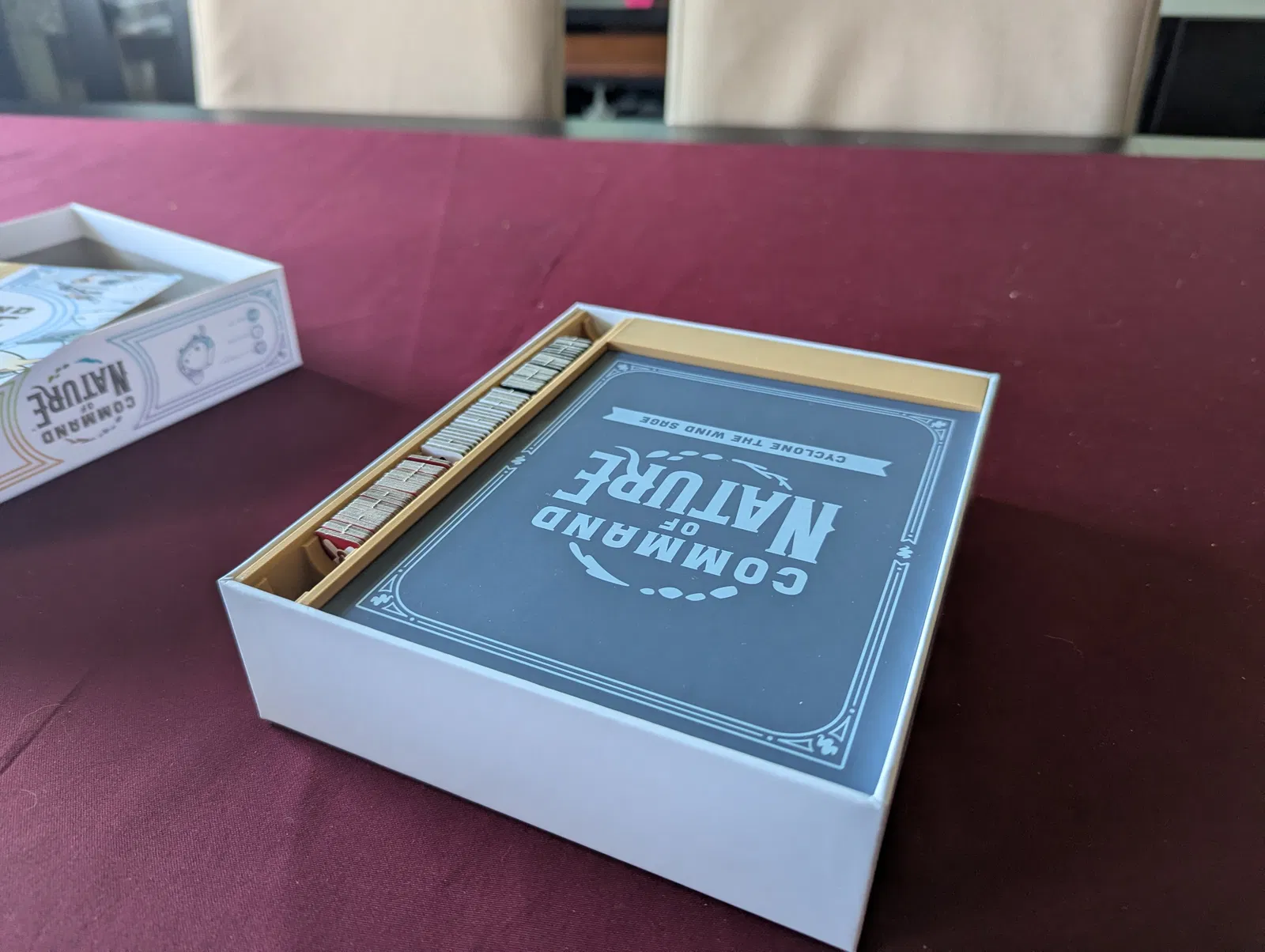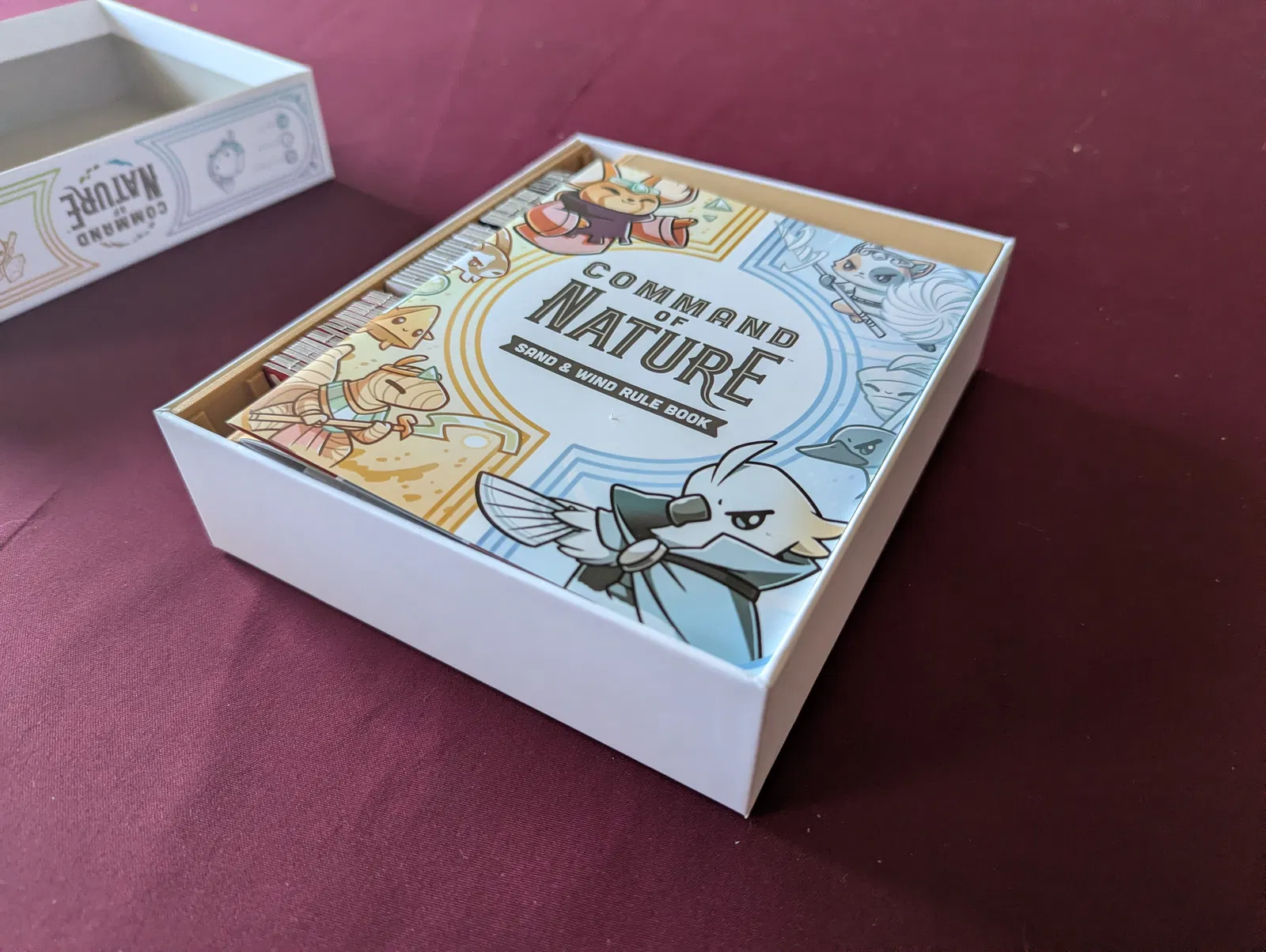 Organizer cho boardgame Command of Nature, chứa vừa base game + expansion 1 trong hộp gốc và đậy nắp không bị đội. Dành cho bản retail (không phải Kickstarter). Có chỉnh kích thước khay bài, không dùng được sleeve.