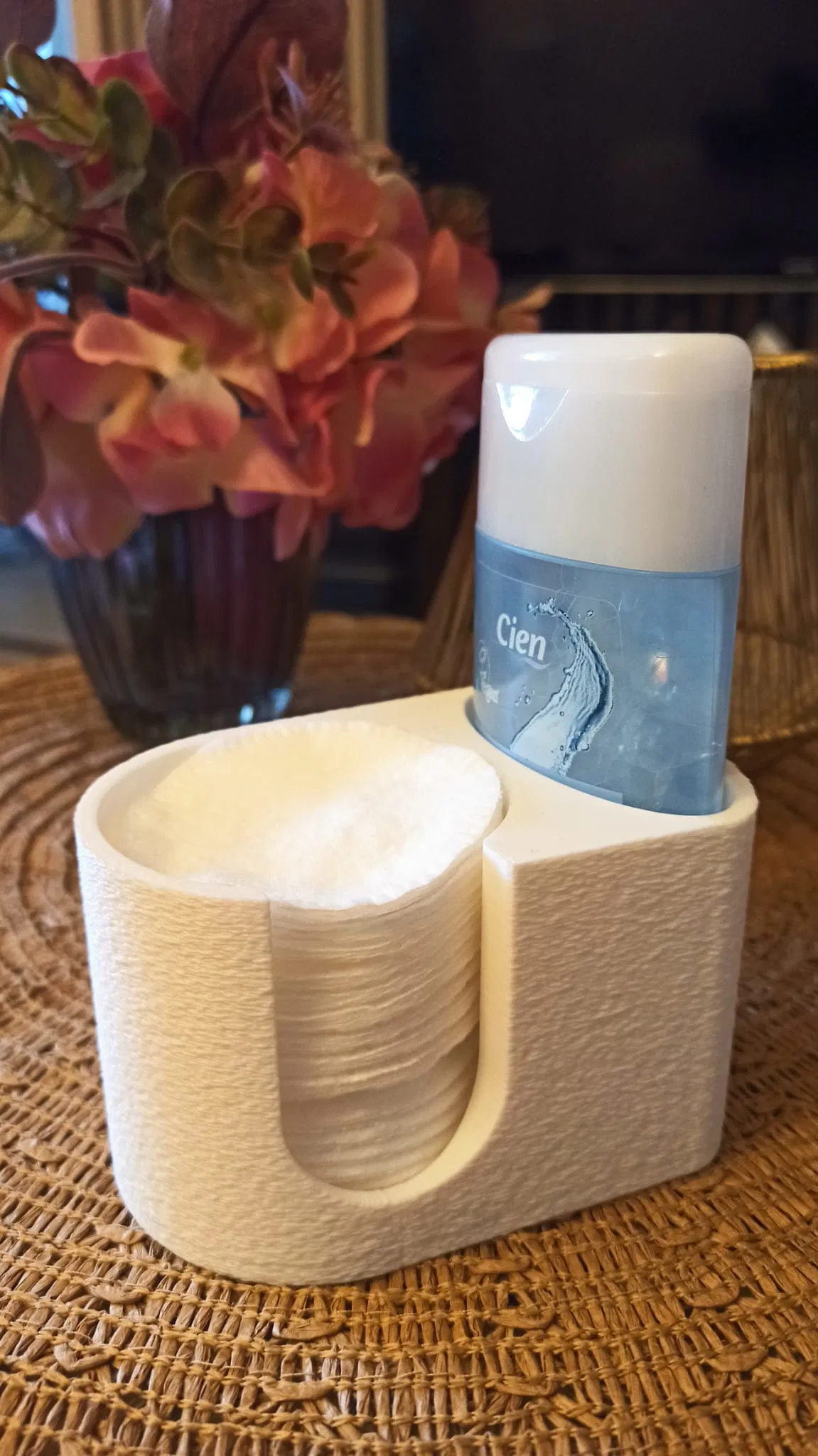 Với thiết kế tinh tế, giá đỡ này không chỉ giúp bạn giữ chai nước hoa hồng (hoặc dung dịch tẩy trang tương tự) và chồng bông tẩy trang luôn sẵn sàng, mà còn góp phần làm đẹp thêm không gian phòng tắm hay bàn trang điểm của bạn. Chất liệu nhựa in 3D bền bỉ, an toàn cho sức khỏe, cùng với kiểu dáng hiện đại, chắc chắn sẽ làm hài lòng cả những khách hàng khó tính nhất. Đây là một giải pháp hoàn hảo để tối ưu hóa không gian và mang lại sự tiện lợi tối đa.