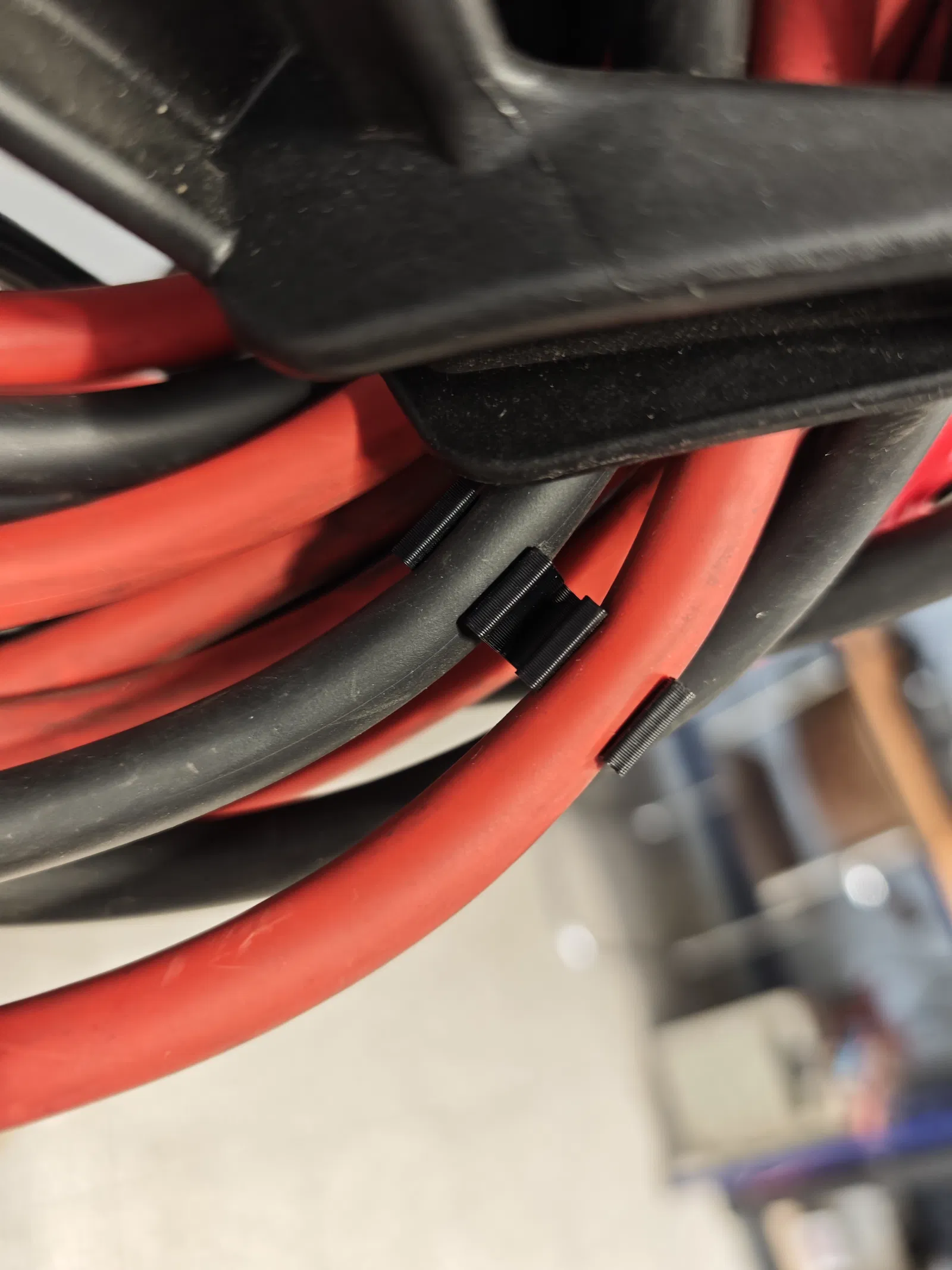 Giá đỡ in 3D giúp sắp xếp gọn gàng dây sạc và các kẹp (clamps) của bộ sạc ắc quy. Giữ dây gom lại một chỗ, hạn chế bị rối và cải thiện việc tổ chức khu vực làm việc.