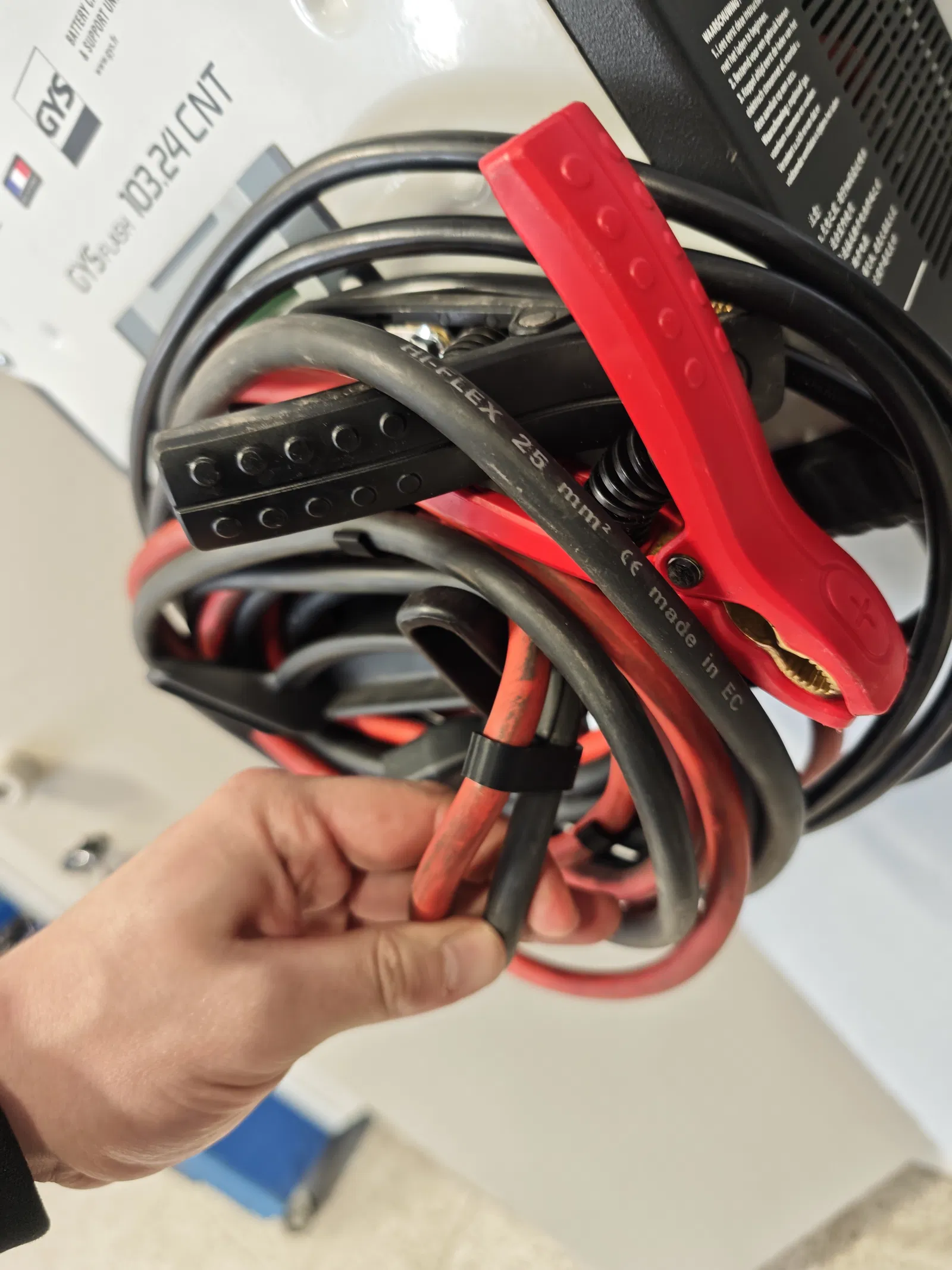 Giá đỡ in 3D cho Držák kabelů GYSFLASH 102.24, giúp cất gọn dây sạc và kẹp của bộ sạc ắc quy. Gom dây lại một chỗ, hạn chế rối và giữ khu vực làm việc ngăn nắp, an toàn hơn.