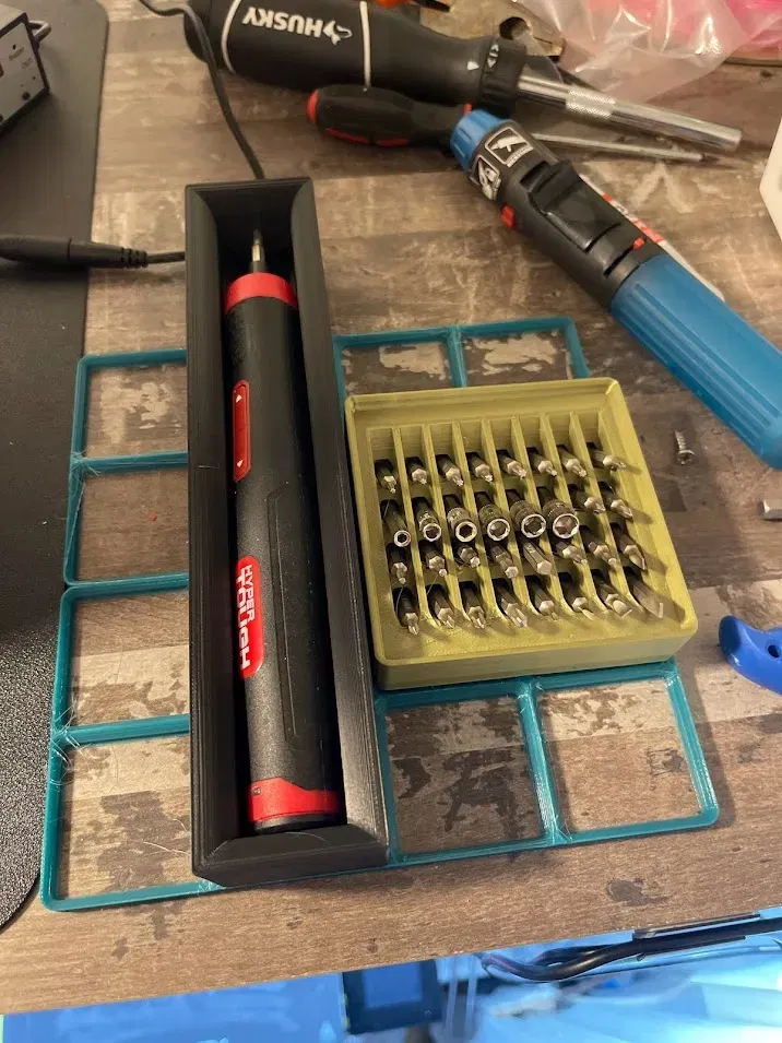 Tôi rất mới trong việc thiết kế, vì vậy đây là một trong những sản phẩm đầu tiên của tôi. Nó vừa vặn khá chặt, nhưng vẫn có thể lấy ra. Tôi có thể thiết kế lại và đặt nó ở một góc để việc tháo ra dễ dàng hơn. Phù hợp với đầu vít trong tuốc-nơ-vít.