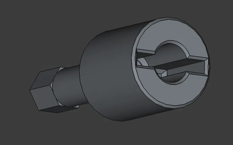 Nên đây là bản cập nhật. Bản này có đầu lục giác 17mm tiêu chuẩn VÀ thêm một đầu vuông 10mm. Mình cũng thêm mấy rãnh nhỏ để ratchet của bạn bám/khóa vô cho chắc ;). Phần đầu làm việc cũng được cải thiện bằng cách thêm chamfer sâu và rộng hơn ở miệng, giúp dễ chụp vô đai ốc khi thao tác trong chỗ khuất.