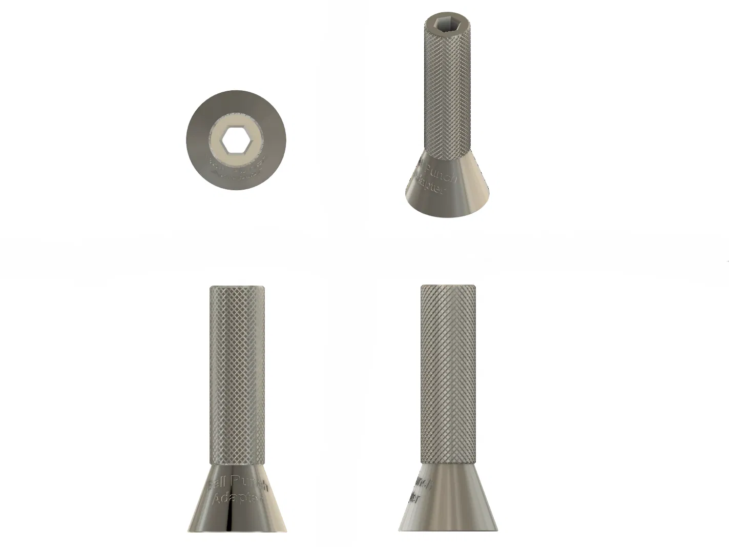 Một bell punch dạng slip‑fit được thiết kế cho Centre punch 11mm, ví dụ như BAHCO 3735N‑6‑150. Món này giúp canh tâm mũi đột trên các trục tròn, cho dấu đột chính xác, lặp lại ổn định, không bị lắc hay phải canh mò. Chụp bell chỉ cần úp vào là tự canh thẳng, dùng xong rút ra gọn sạch. Thiết kế có chamfer đúng chuẩn, mặt tỳ trên (top land) vững, và phần cầm knurled tạo độ bám tay để dùng trong xưởng cho tin cậy. Rất hợp cho gia công kim loại, chế tạo, và các bước layout/đánh dấu trong workshop nói chung.