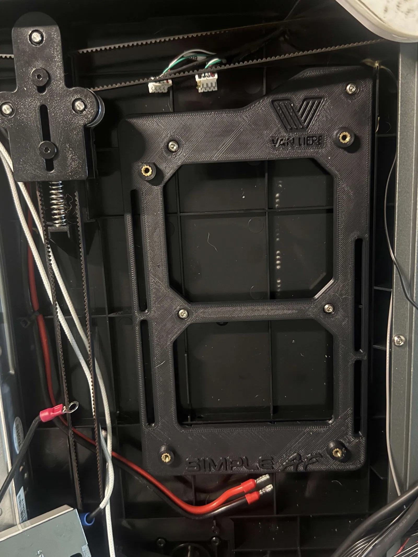 Không cần phải dùng Dremel cắt gọt máy in: mount này đã được chừa/“cắt” theo phần gân (bottom fins) ở đáy máy để bạn khỏi phải mài đi. Nó bắt bằng đúng các con ốc zin đang giữ MCU/motherboard mặc định của máy.