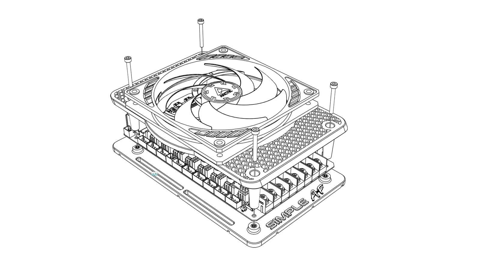 Bắt quạt Arctic vào shroud bằng ốc m3x8 hoặc m3x20.