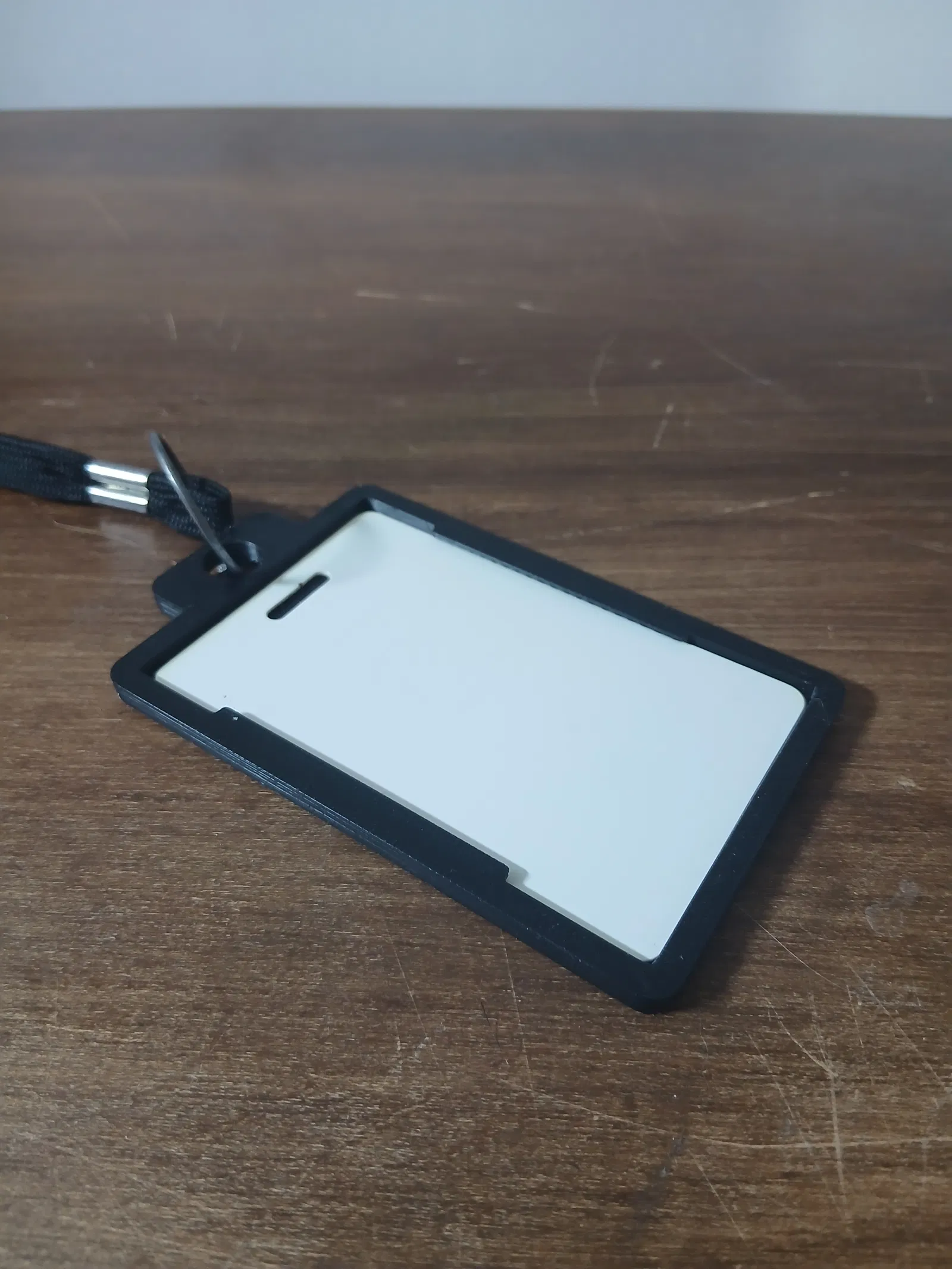 Mẫu giá đỡ thẻ ID (badge holder) dạng một mảnh, thiết kế gọn nhẹ, dễ in và tiện lắp/tháo thẻ. Thời gian in khoảng 36 phút. Có kèm kích thước tham khảo và thông số in PLA/nozzle/support.