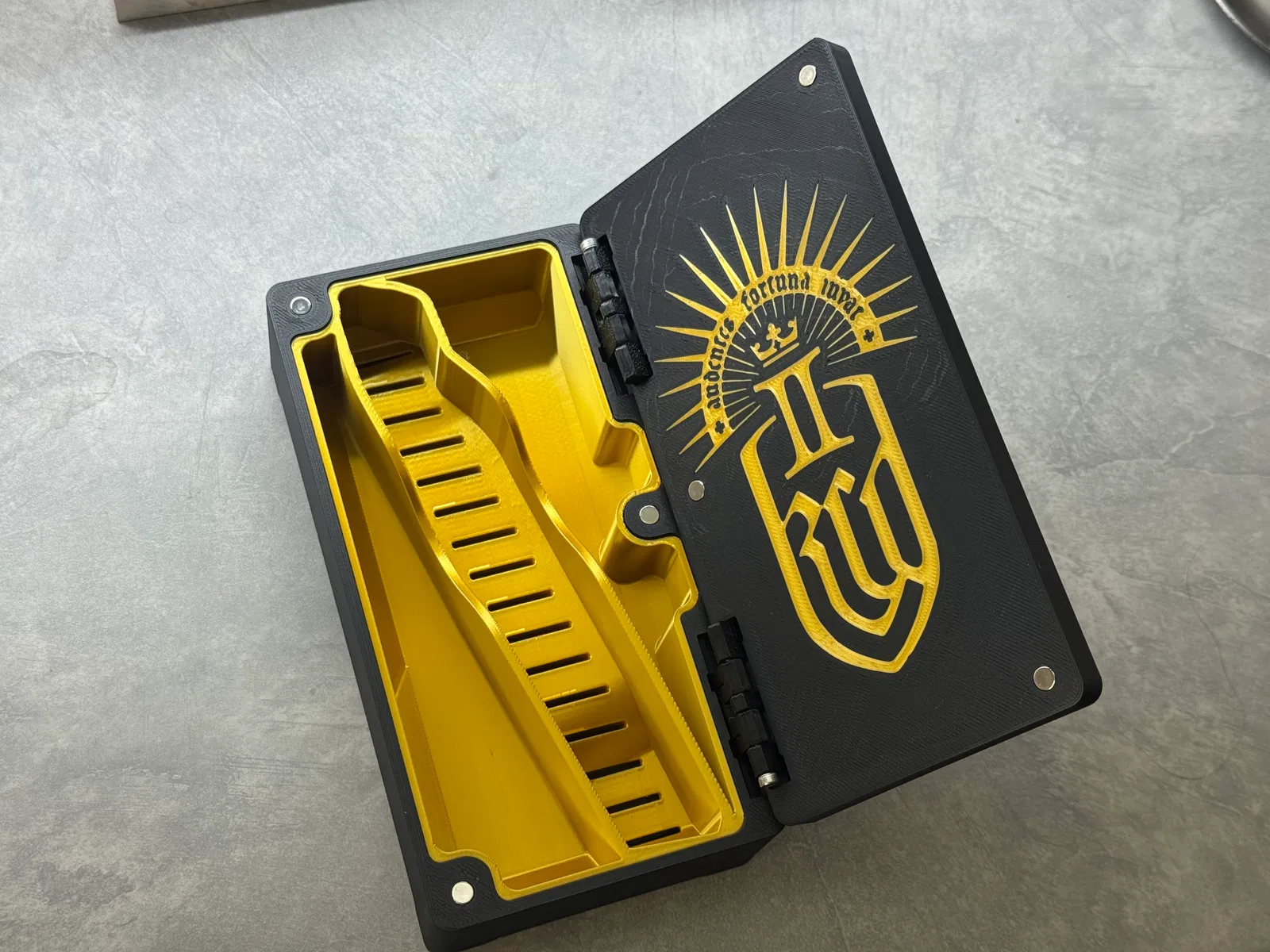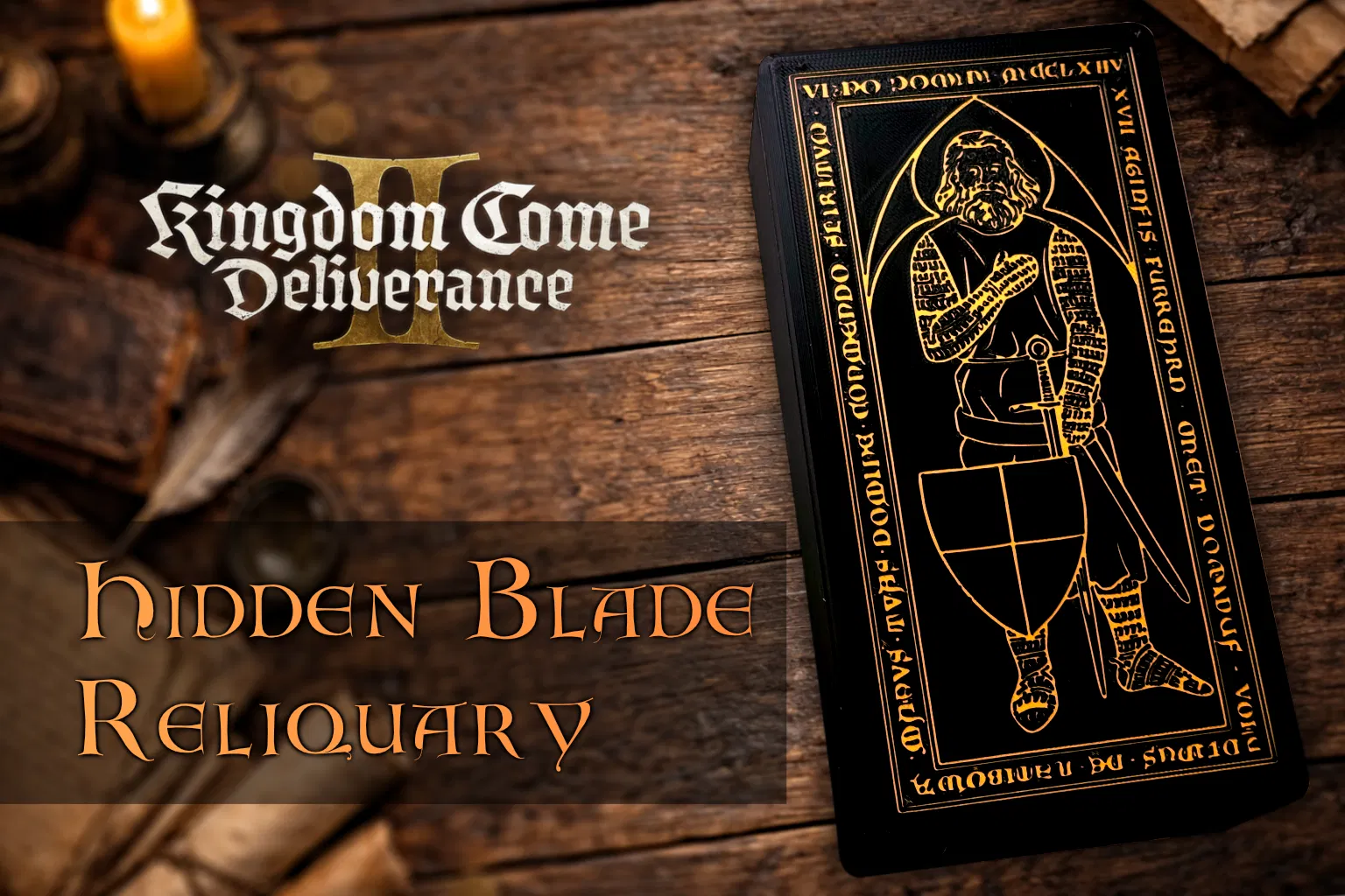 Hidden Blade Reliquary là một chiếc rương/casket phong cách trung cổ lấy cảm hứng từ KCD2, được thiết kế để cất gọn những món đồ hiện đại trong một hình khối trang nghiêm, mang tính kiến trúc. Lấy cảm hứng từ nhiệm vụ của Sir Valentine trong Kingdom Come: Deliverance, nơi Sword of Sir Valentine cuối cùng bị gãy, mẫu reliquary này “kể lại” câu chuyện theo hướng gìn giữ — trân trọng bảo vệ một lưỡi dao mang tầm huyền thoại: OneBlade360.