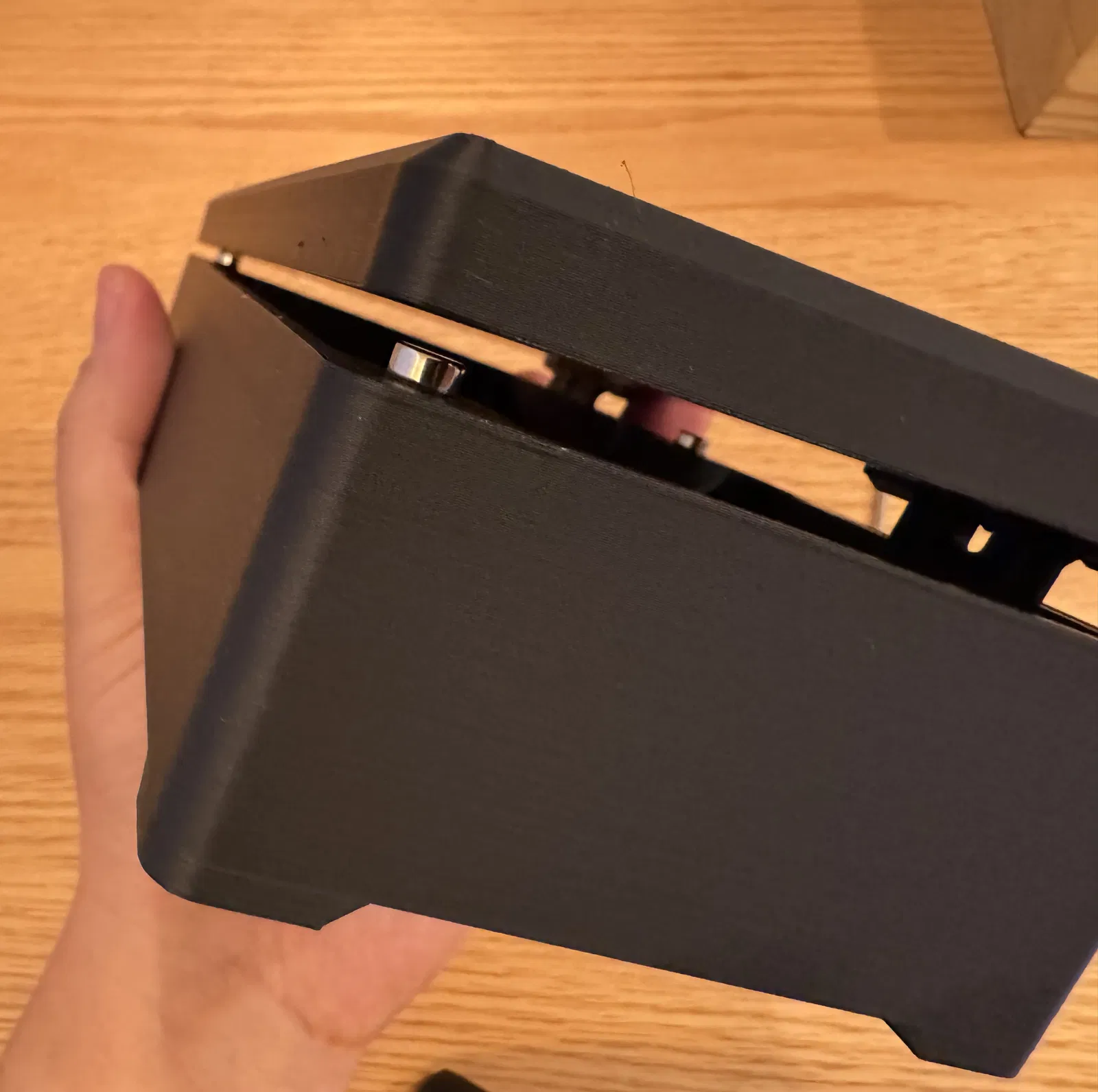 Nếu in bằng PLA, bản lề có thể bị nứt trong lúc ép vào. Khuyến nghị dùng PETG, ABS, hoặc ASA để bền hơn.