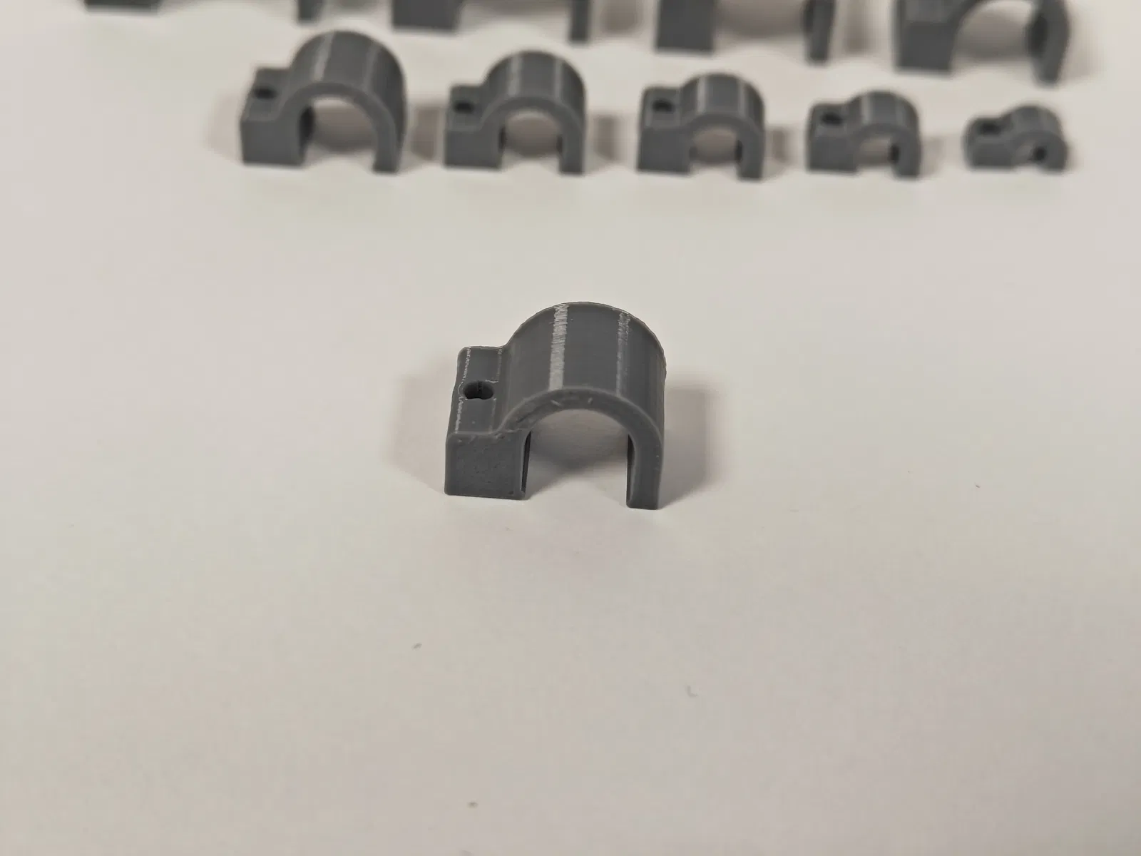 Material: Khuyến nghị mạnh PETG hoặc ABS. Vì khi sử dụng bạn sẽ đóng búa lên (hoặc gần) các kẹp này; PLA có thể giòn, dễ nứt/vỡ.
