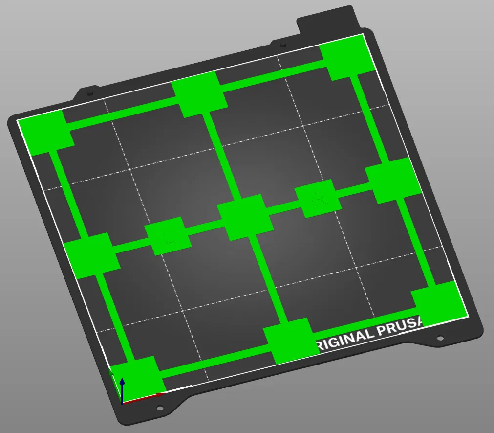 Mình chỉ lấy file STL từ Prusa Knowledge Base rồi chỉnh sửa lại để khớp với kích thước mặt bàn in của Prusa Mini.