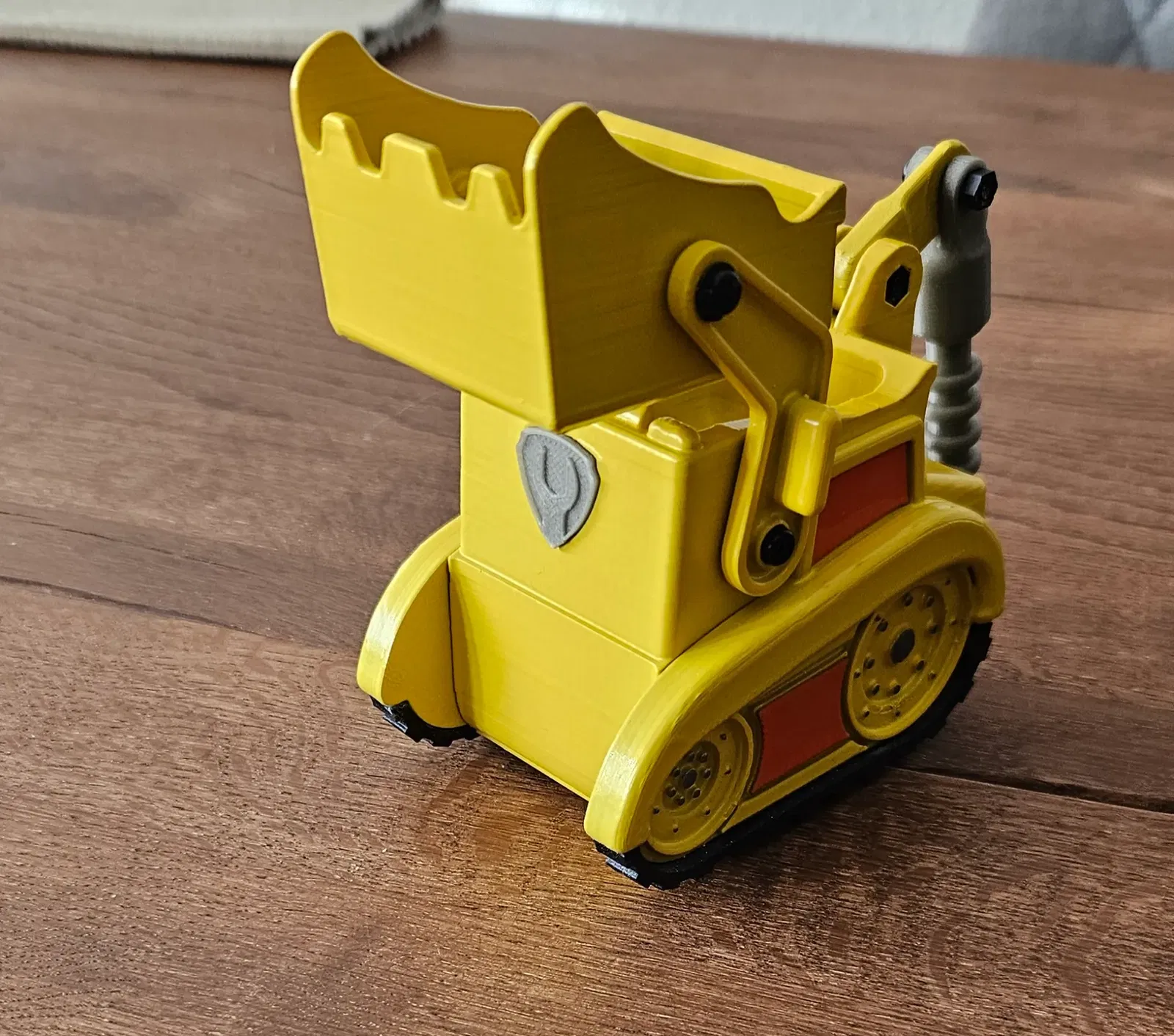 Mẫu Paw Patrol Rubble Bulldozer được remix từ @Bubutech. Dùng vít 2mm cho bánh xe, 6 vít 3mm + 4 ê-cu 3mm cho các phần chuyển động. Bánh xích và các chi tiết cần dán keo, canh bằng filament 1.75mm.