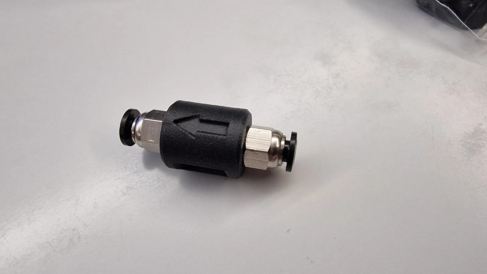 Zero Resistant PTFE Coupler M10 giúp giảm tối đa lực cản nhờ canh thẳng hàng 2 ống PTFE và miệng vào được vát góc. Có cửa sổ kiểm tra ống đã gắn đúng, kèm mũi tên chỉ hướng filament và hướng đặt để in.