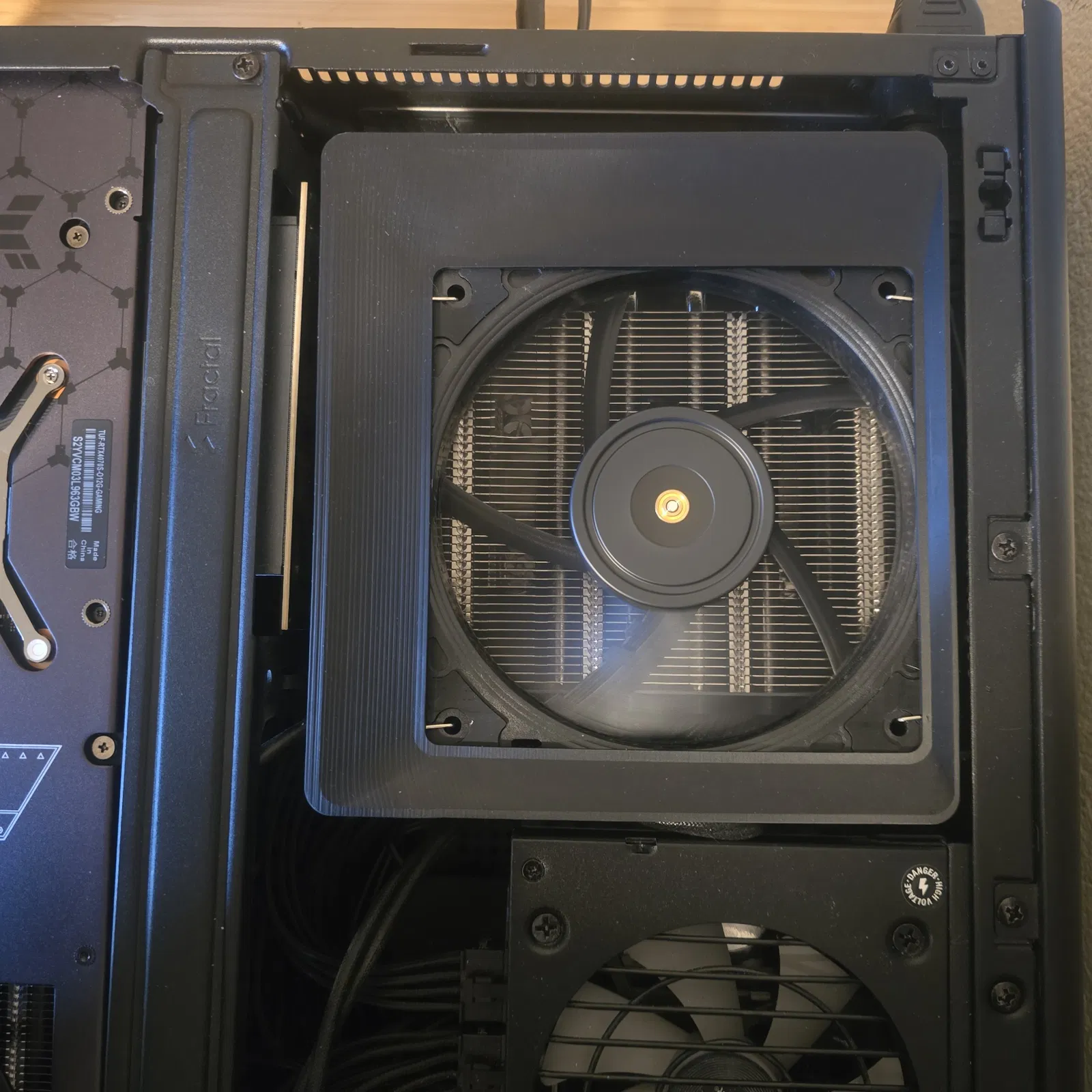 Duct giúp tối ưu luồng gió trong case Fractal Ridge khi dùng tản AXP120-X67 kèm quạt Noctua 120x15mm. Có thể hợp với vài cấu hình quạt 120mm khác nếu khoảng hở giữa quạt và vỏ case là 6.3mm.