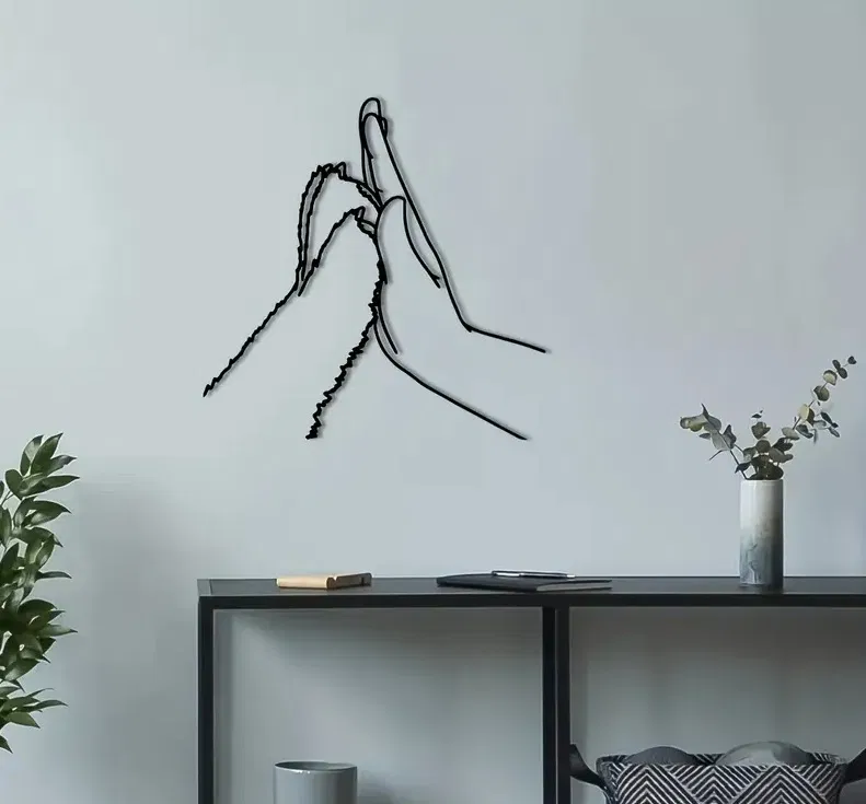 Bức tranh được tạo hình theo phong cách tối giản, chỉ với một nét vẽ liền mạch, khắc họa hình ảnh bàn tay con người đang chạm nhẹ vào dấu chân chó. Sự kết hợp tưởng chừng đơn giản này lại hàm chứa một câu chuyện sâu sắc về tình yêu thương, sự gắn bó và lòng trung thành. Nó là lời nhắc nhở ngọt ngào về những người bạn đồng hành đáng yêu luôn ở bên cạnh chúng ta, chia sẻ mọi vui buồn. Treo bức tranh này trong phòng khách, phòng ngủ, hoặc bất kỳ góc nào trong nhà, nó sẽ trở thành điểm nhấn thu hút mọi ánh nhìn, thể hiện gu thẩm mỹ tinh tế của gia chủ và tình yêu đặc biệt dành cho thú cưng.