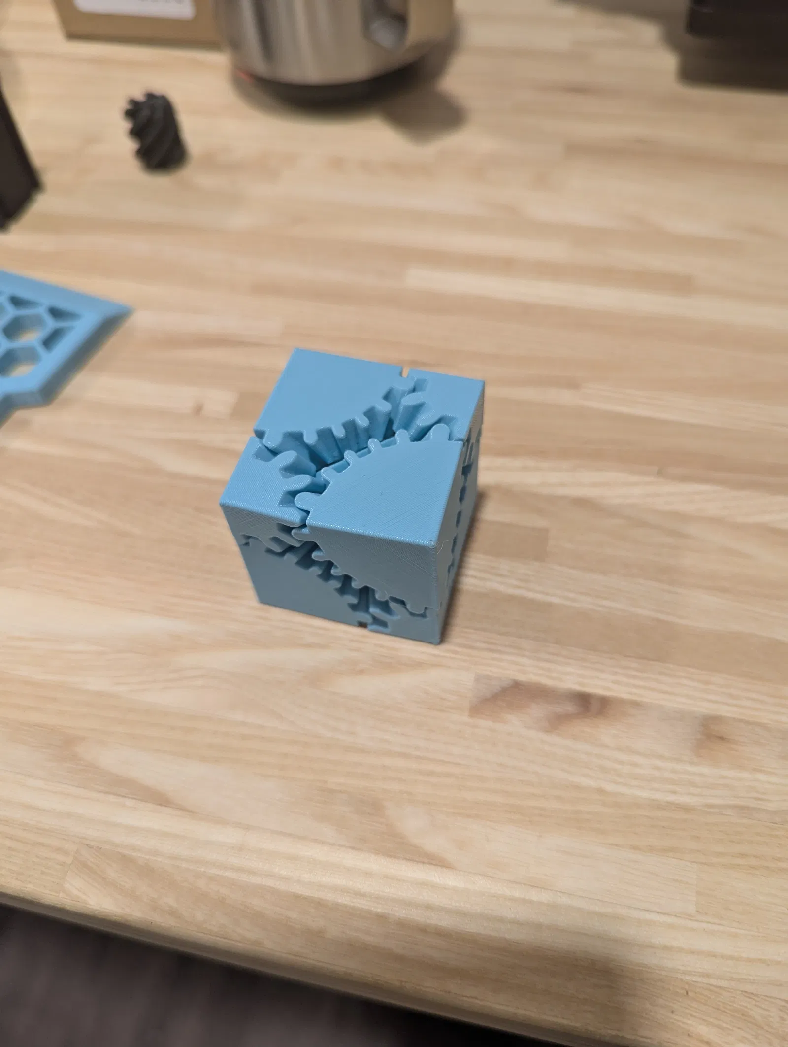 Cube Gears, phiên bản in được đầu tiên là do emmete trên thingiverse làm. Mình đã reverse engineer lại model của bạn ấy để làm bản này.