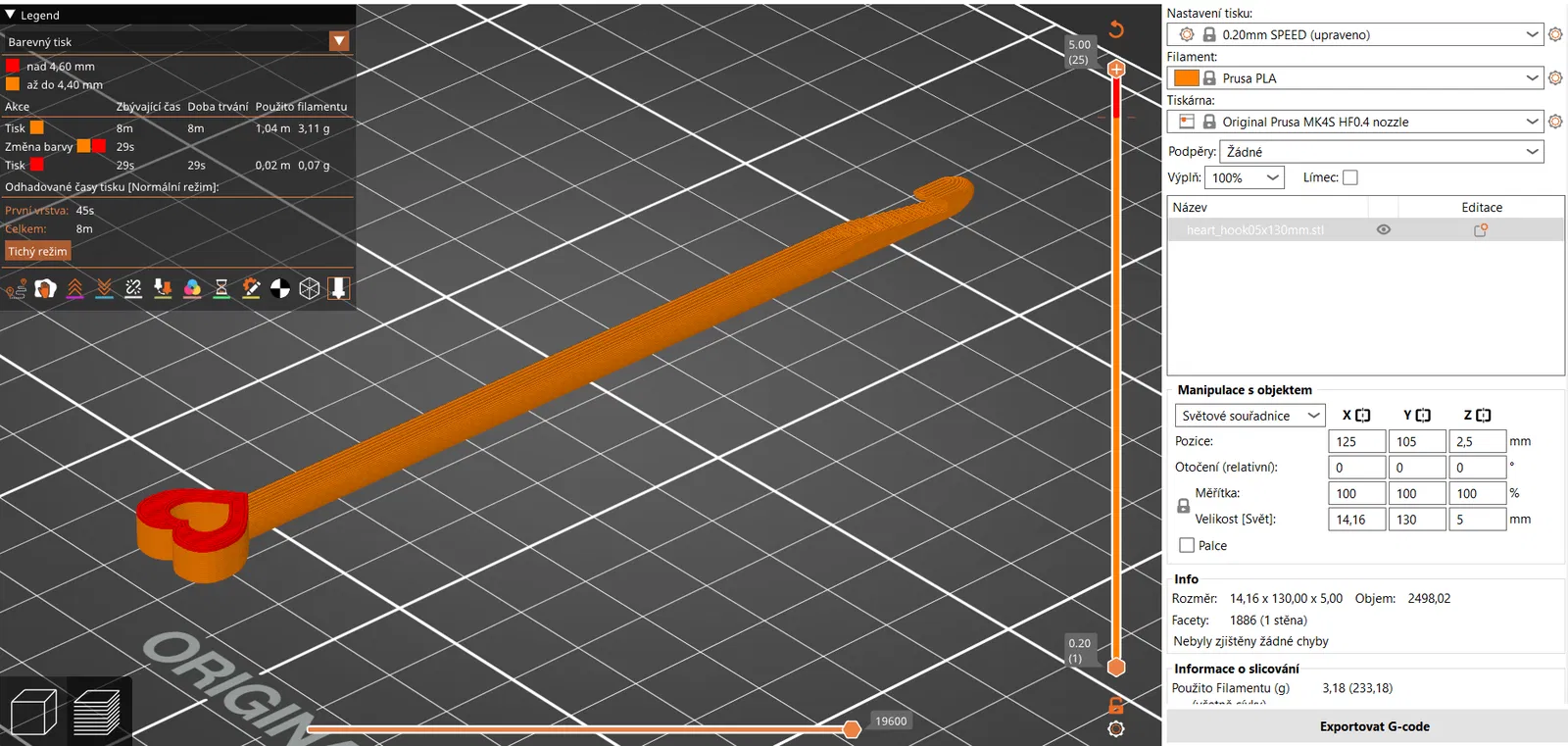 Bản có hình trái tim sẽ rất đẹp khi in bằng filament PLA 3 màu (tricolor) với một lần đổi màu. Phần trên của trái tim nên dùng filament một màu tương phản để nổi bật.