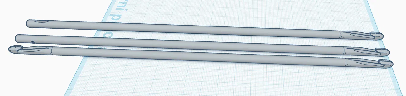 Mẫu dễ in. Bạn có thể in mọi cỡ kim móc trong bộ này với màu filament khác nhau. Mẫu này phù hợp kiểu print in place, không cần brim hay supports. In bằng PLA, rồi chà mịn bằng giấy nhám mịn.