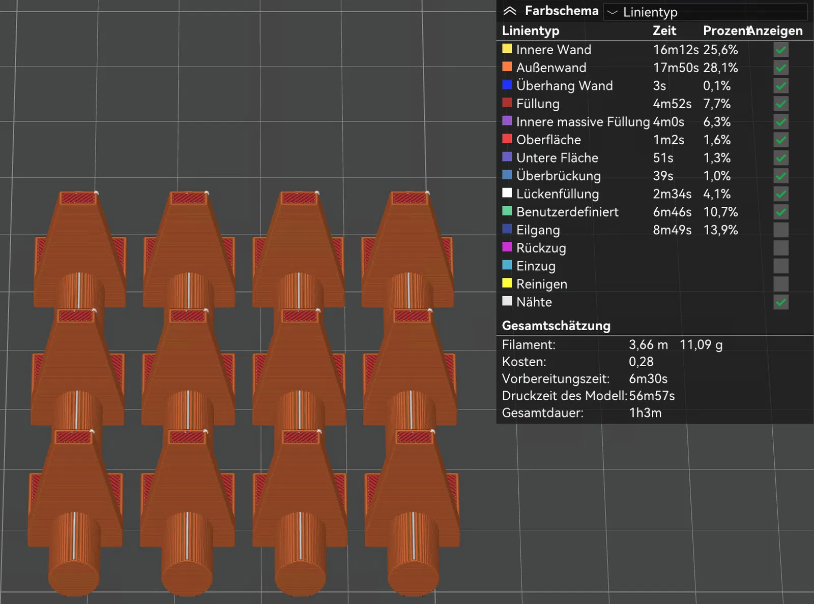 Trong cái tủ này, mình đã làm sẵn một món cho phần vách lưng (xem link: https://makerworld.com/en/models/138898) nhưng lại bị thiếu mấy cái chốt/giá đỡ (pin holders) để đỡ các tấm kệ (Einlegeboden). Lần này tủ dùng lỗ khoan ∅6mm.