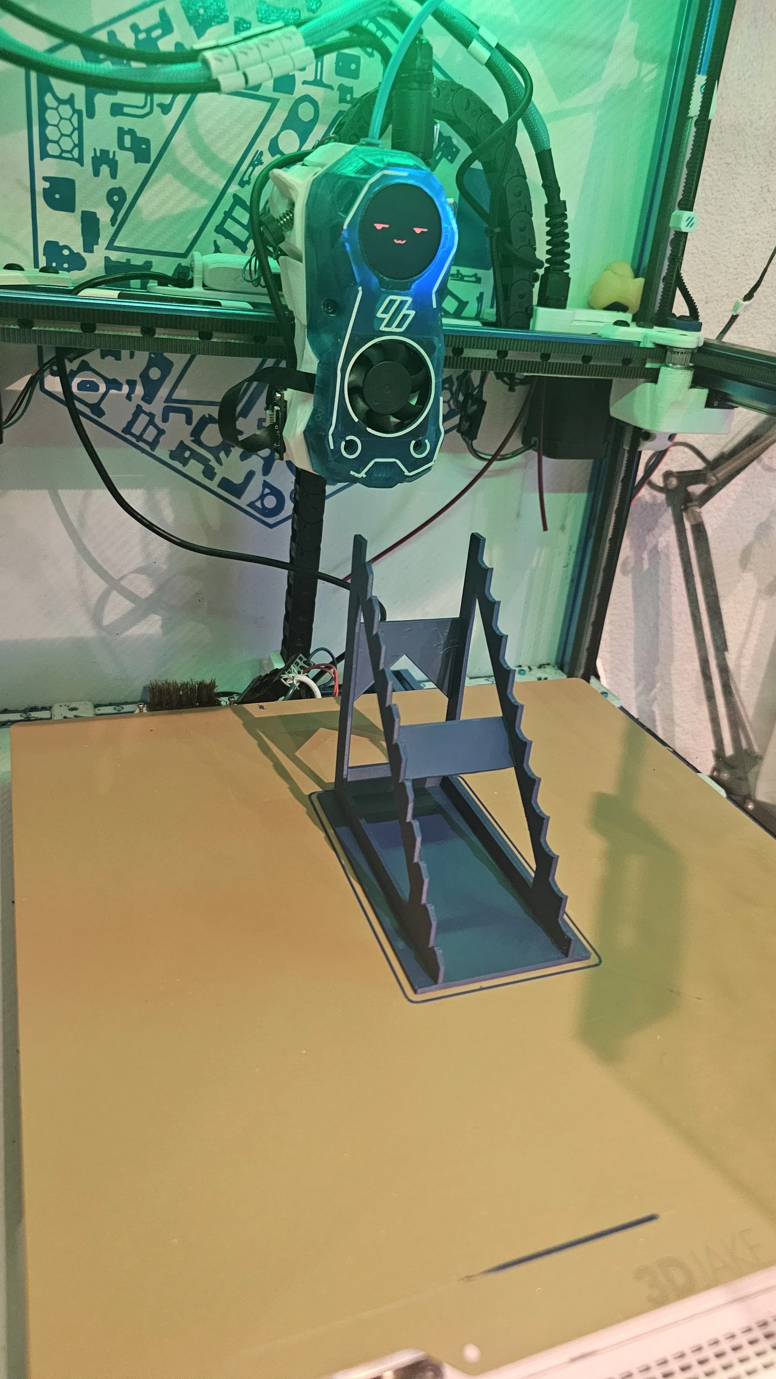 Kệ trưng bày dao do tác giả tự thiết kế vì không tìm được mẫu phù hợp nhu cầu. Trưng bày tối đa 11 cây dao, có thể scale 50% cho dao nhỏ. Yêu cầu bàn in 240mm hoặc chiều cao 240mm tùy phiên bản.