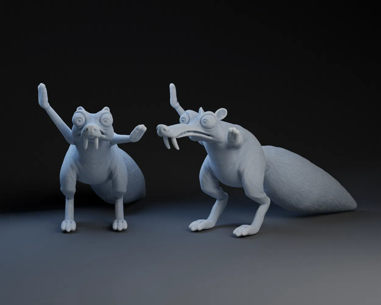 Mẫu 3D Scrat – chú sóc răng kiếm trong Ice Age. Có bản Scratthick.obj và các file liên quan (1/25/25) để làm dày tay/chân, bàn tay/bàn chân cho in 3D chắc chắn hơn. Link acorn đi kèm có sẵn.