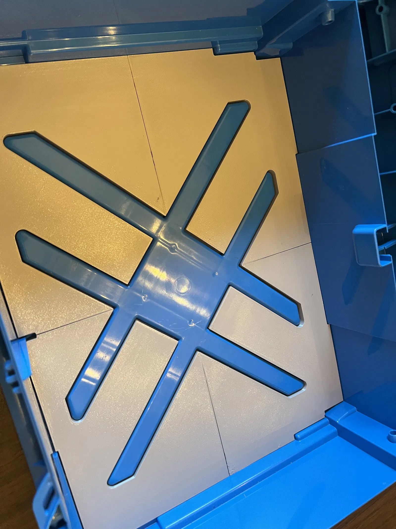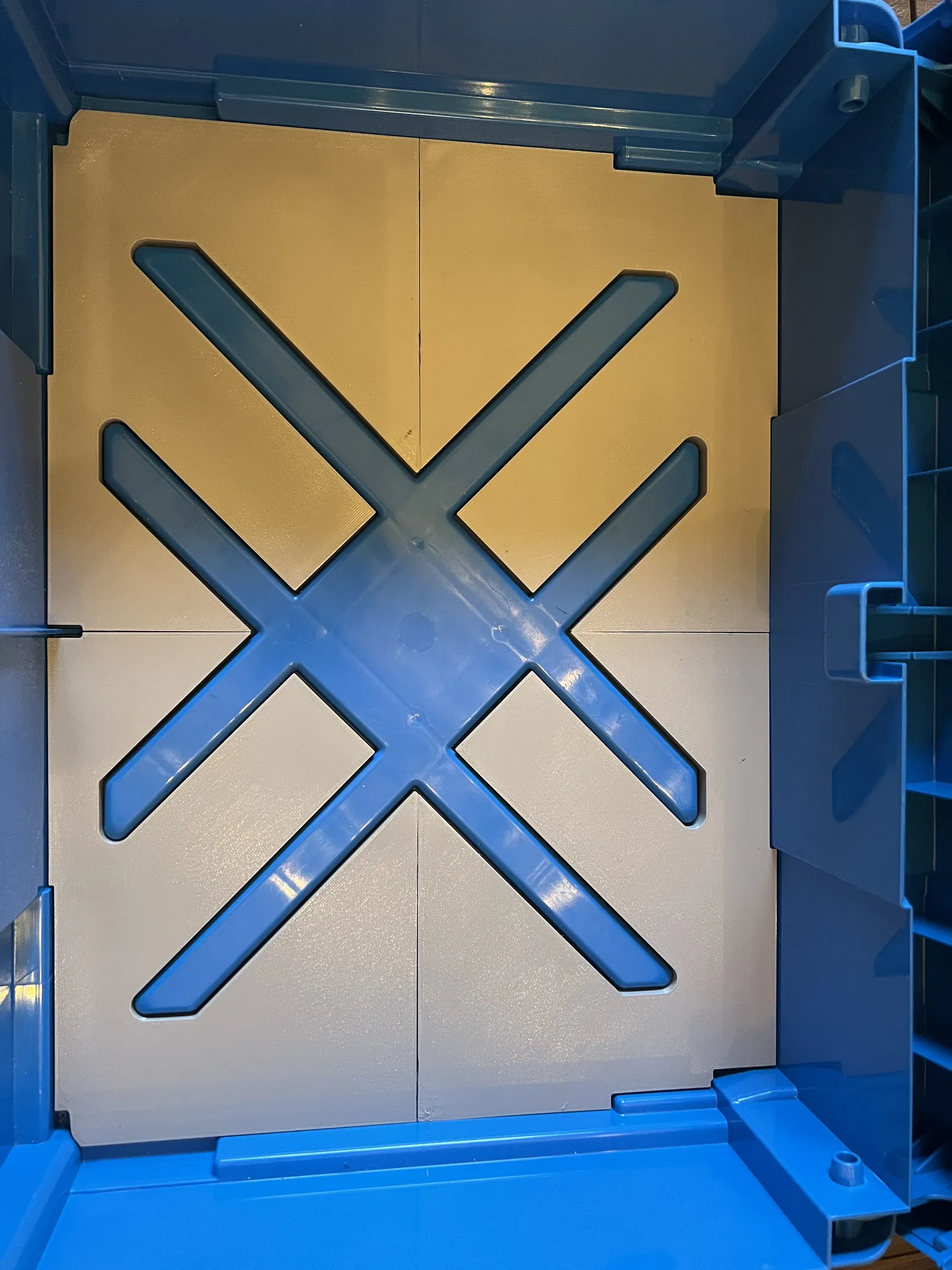 Mẫu này dùng các Festool Systainer3 models của BS Horb để dựng một miếng insert phẳng cho phần đáy. Mình thấy Systainer thương hiệu Tanos bản M137 của mình có vài chỗ khoét hơi khác, nên mình chỉnh và cắt thêm một chút. Cuối cùng còn lại là một khay phẳng có thể đem đi in 3D (hoặc cắt laser nếu bạn thích!) rồi đặt vào trong thùng; sau đó bạn có thể lót shadow foam hoặc gắn các ngăn organizer lên trên.