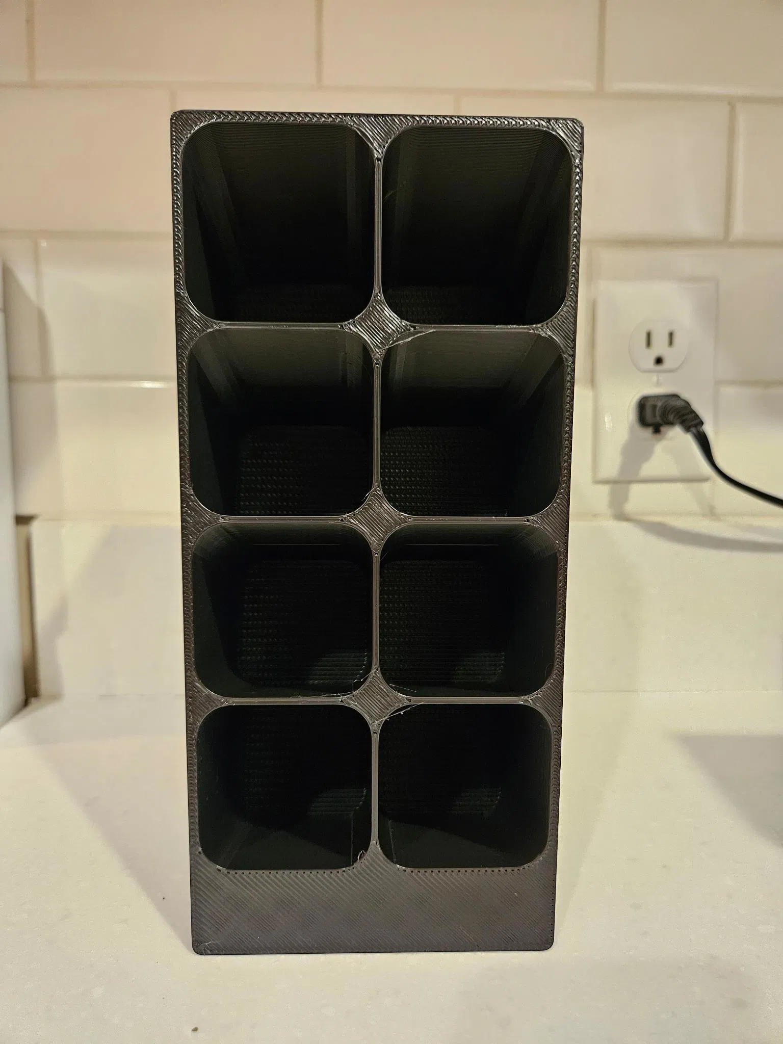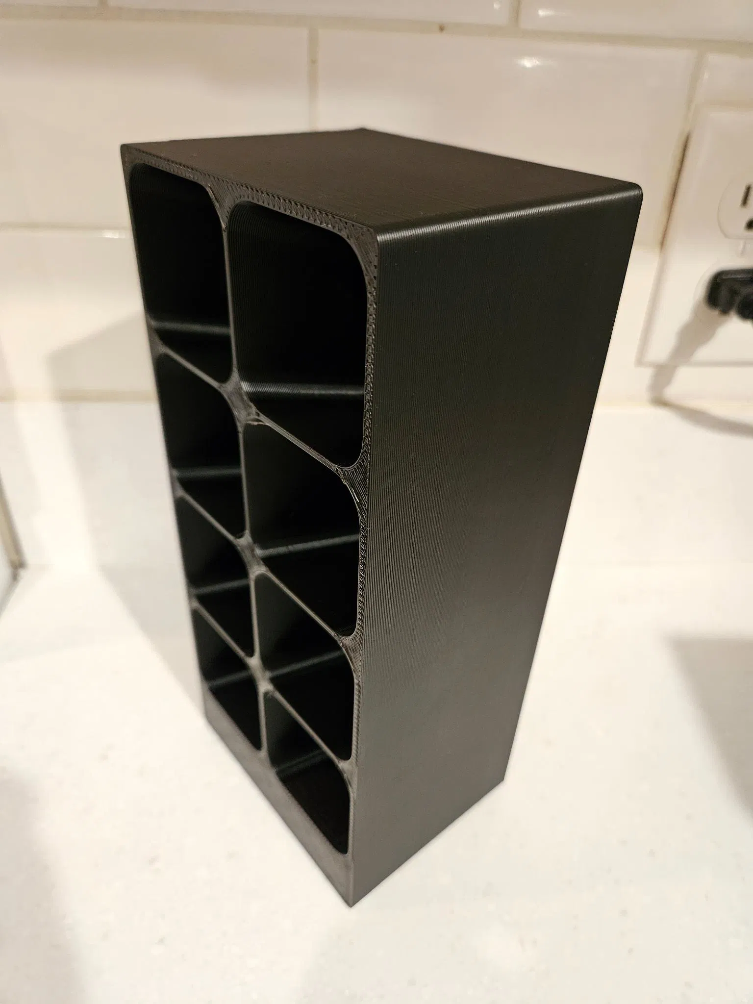 Kệ đựng gia vị (Spice Rack) để chứa 8 hũ gia vị vuông. Bản remix để vừa trong tủ, đặt cạnh bản gốc 3x4. Thông số in tham khảo: không cần supports, tùy nozzle/layer height/infill; lỗ hũ 50×50 mm, sâu ~64 mm.