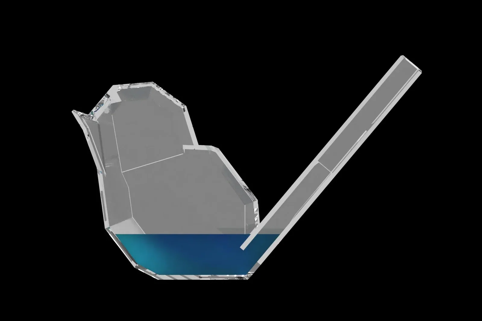Để làm cho cái còi “kêu”, hãy cho một ít nước vào lỗ còi ở đỉnh đầu của con chim. Nếu in với vật liệu trong suốt, nước nên đi lên trên tấm chắn. Xem sơ đồ đính kèm.